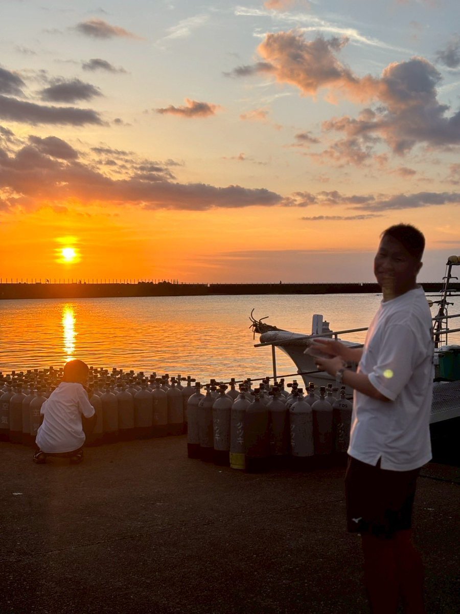 9/22-23 後期OW合宿!高知メンバーと共に! 初ダイビング後には感想を語らいながら夕日をバックにパシャリ!🌇みんな春合宿のクジラが楽しみで仕方がないみたい🐳 #ダイビングサークル #DiveDive pic.x.com/H6U3o6a874