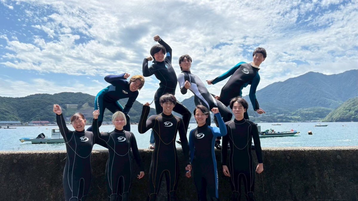 海で1回生の夏合宿第2弾🌊 マイスーツデビュー組が勢揃いし、カラフルで楽しい2日間に✨ #ダイビングサークル #夏合宿 #マイスーツ pic.x.com/6msDbaDcUL