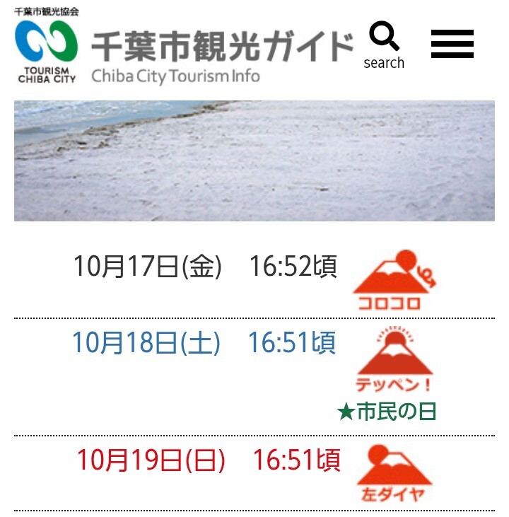 夕暮れ、海の向こうに沈む太陽が、富士山頂にピタリと重なる瞬間 ―まるで空に輝くダイヤのよう💎 千葉市の海辺では、10/14(火)〜23(木)の間、日ごとに移り変わる絶景「#ダイヤモンド富士」が楽しめます🌅 特別な人と、特別なひとときを✨ 観賞スケジュールはこちら↓↓ chibacity-ta.or.jp/fuji pic.x.com/YPgueiSWYj