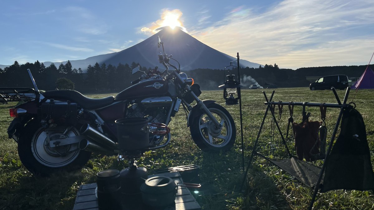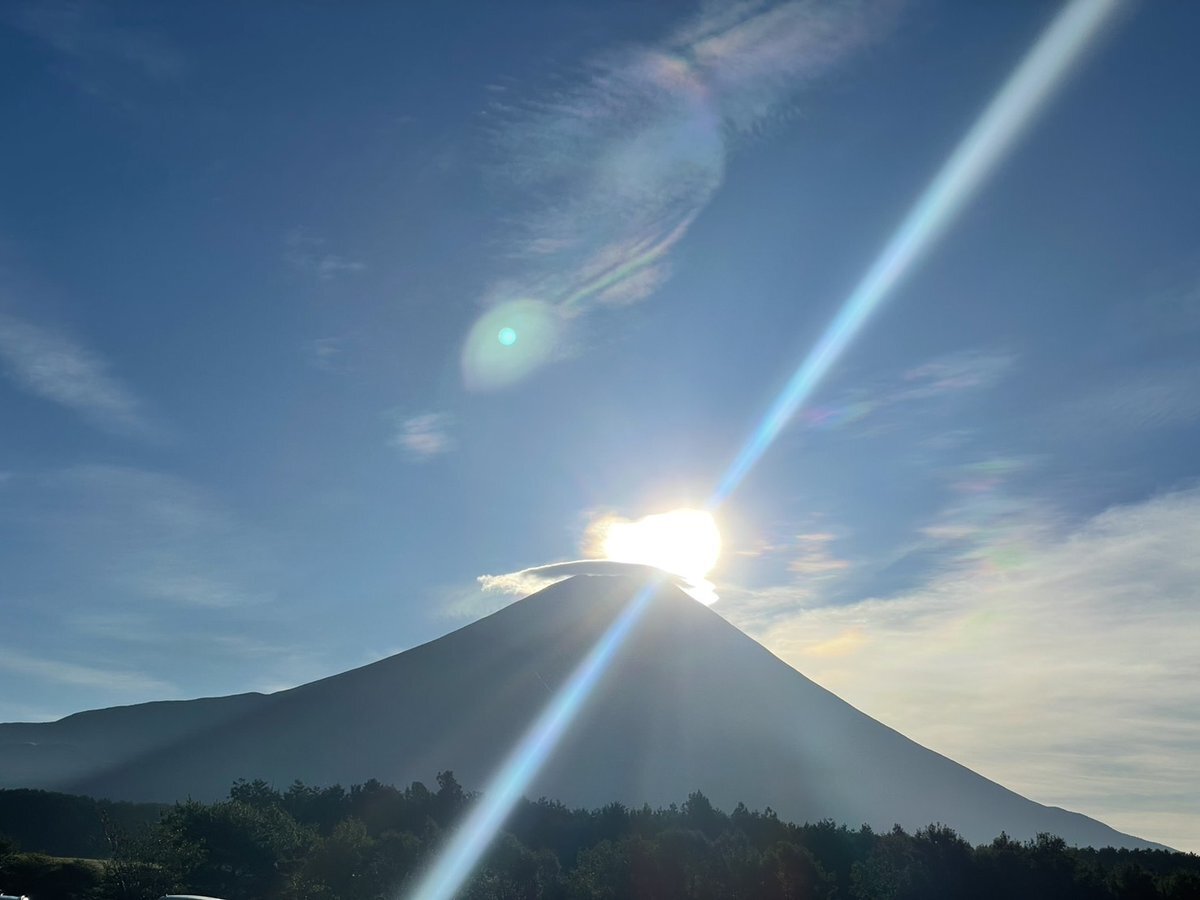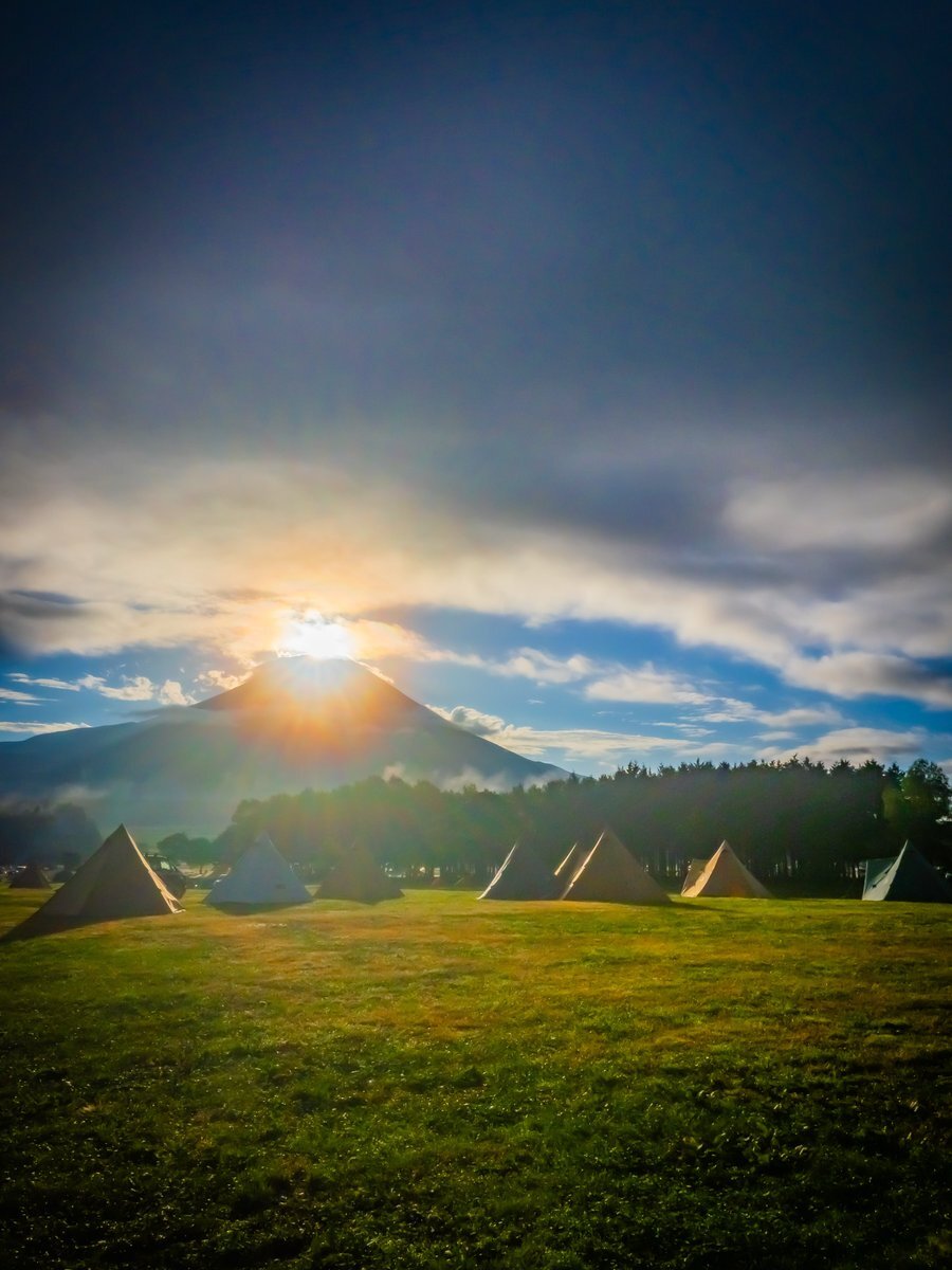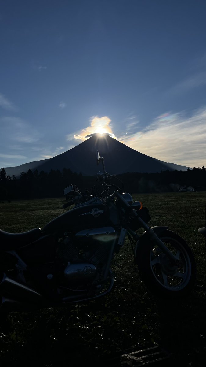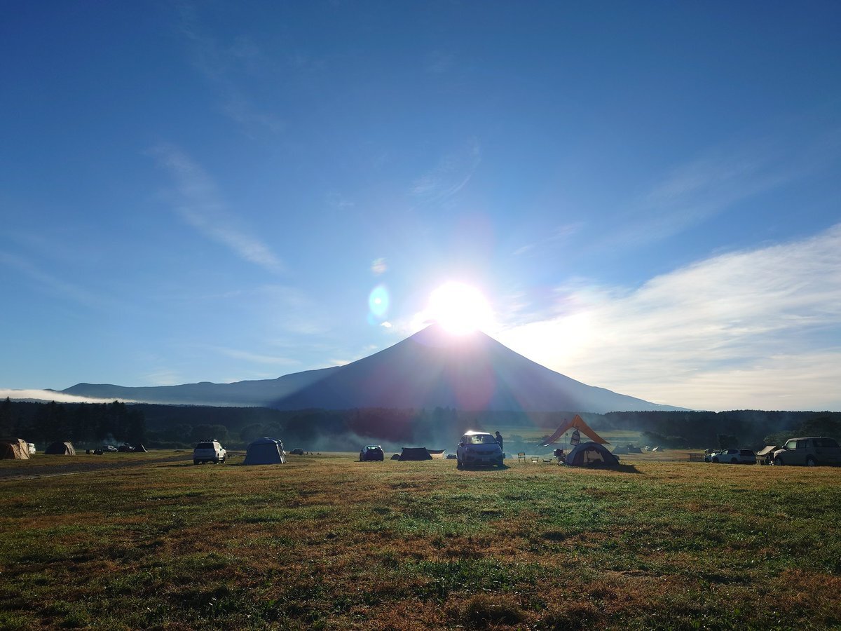 5:30 ごろは曇っていて今日はダメか~😫とあきらめ ➡ からの ➡ 奇跡的に富士山がお目見えしてくれました~🥰 #ダイヤモンド富士 #富士山 #ふもとっぱら pic.x.com/QQIyEYMlk9