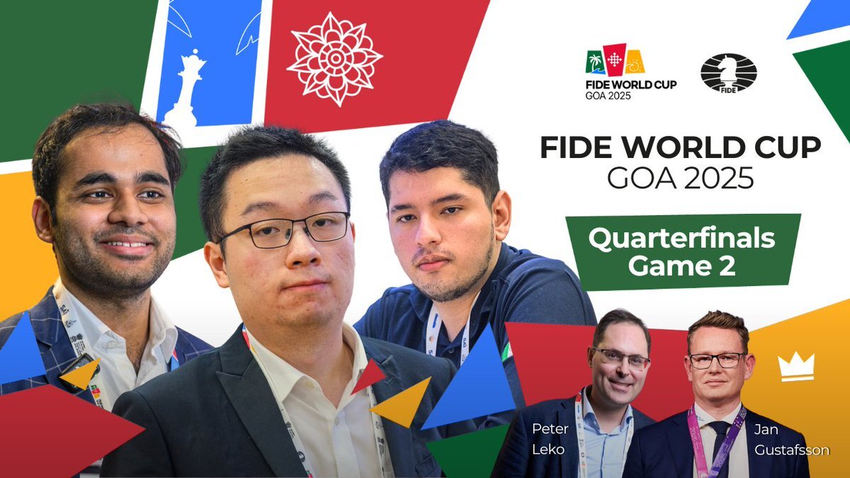 🔥 Quarterfinals Game 2 of the FIDE World Cup 2025 begins at 15:00 IST (UTC+5:30) #FIDEWorldCup 🎥 Watch live commentary with Grandmasters Peter Leko and Jan Gustafsson👇 youtube.com/live/popO9KbOO… Individual streams: 🇲🇽 Martinez Alcantara – Javokhir Sindarov 🇺🇿