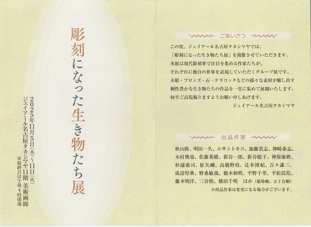 明日5日から11日まで開催 名古屋でのグループ展のお知らせ‼️ 『彫刻になった生き物たち展』 jr-takashimaya.co.jp/topics/lifesty… JR名古屋高島屋11階 美術画廊 入場無料 明田4点出品 『ハイキング』 『ひと休み』 『うまうま元気♪』 『ホワイト ホース』 宜しくお願いします🙇♂️ #明田一久 #彫刻 #ウマ #ツバメ pic.x.com/OjlFMv4WSm