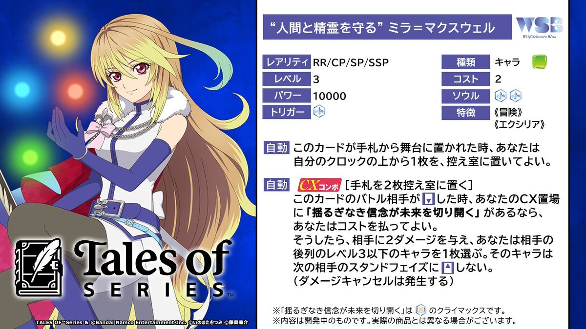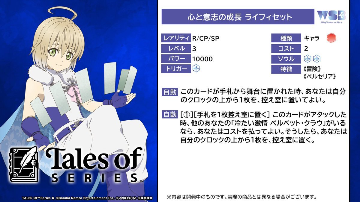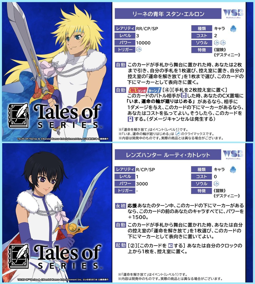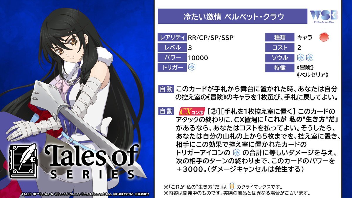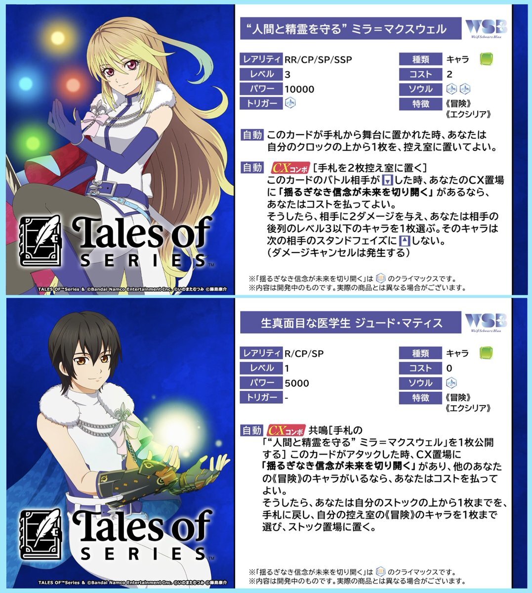💠商品情報 2/2💠 #ヴァイスシュヴァルツブラウ 12月19日(金)発売🎉 ブースターパック 『テイルズ オブ』シリーズ 収録カードテキストを一部公開! カードデザインの公開もお楽しみに! ▼商品情報はこちら ws-tcg.com/ex/TAL_ws_wsb/ #テイルズ pic.x.com/6g6j55GuyF
