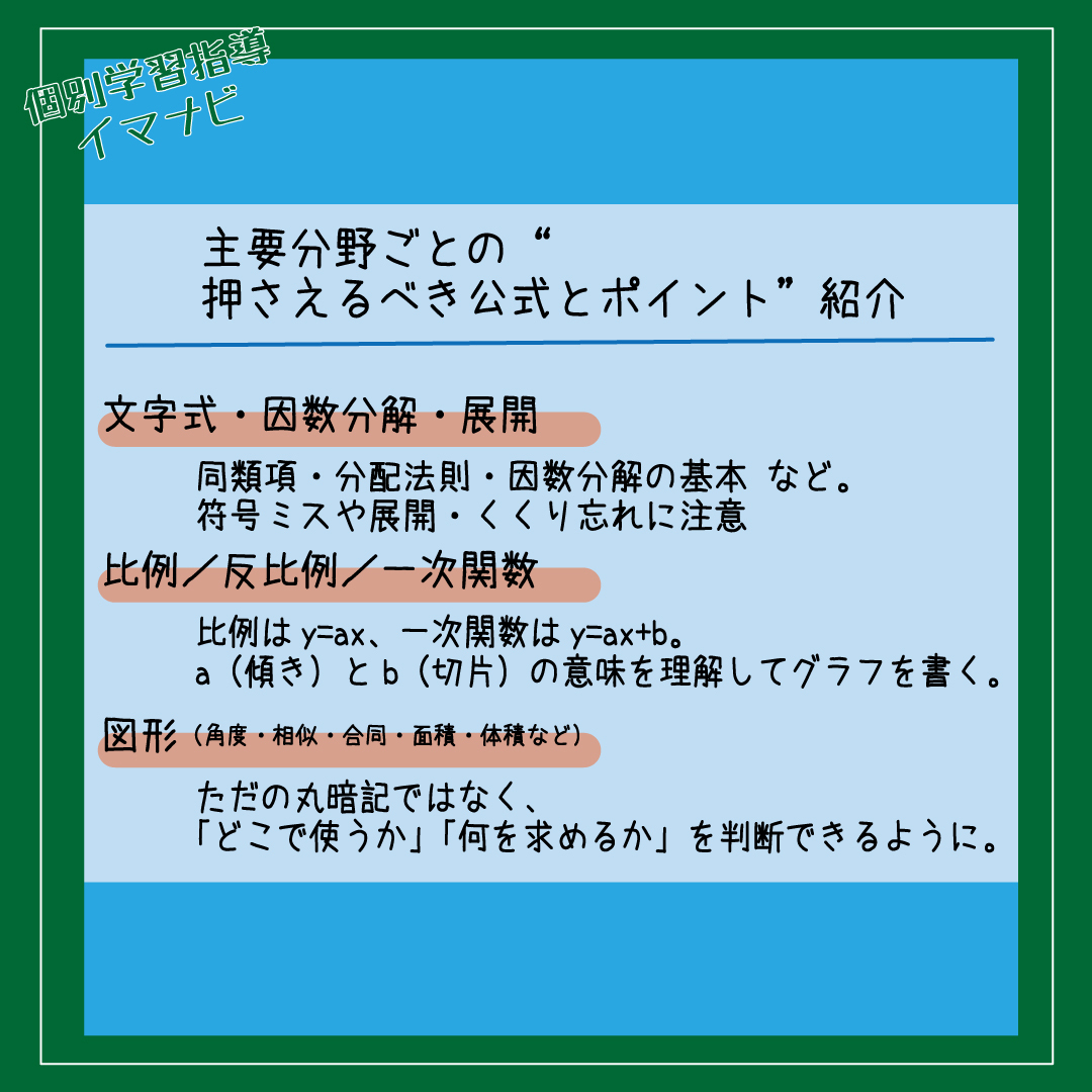 中学数学 公式 完全網羅 個別学習指導イマナビ【堺長尾教室】 share.google/P1kSM5br2gF78k… #中学数学 #数学公式 #定期テスト対策 #テスト勉強 #わかりやすい数学 #勉強垢さんと繋がりたい #勉強法 #数学苦手克服 #数学のコツ #学び直し pic.x.com/m6o2qCYequ