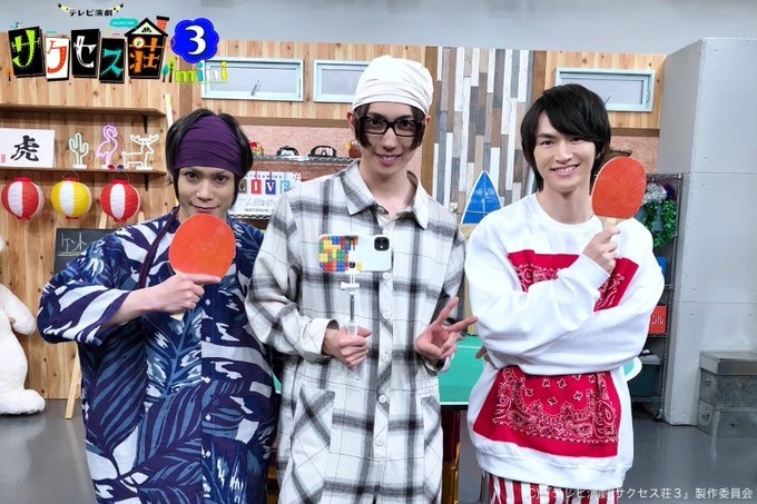 「テレビ演劇 サクセス荘3 mini」 今日深夜3時20分から「あにレコTV」内で第6回の放送です🙋‍♂️ オフショットも大公開📷🌈 倉庫で探し物をするアンテナ(#有澤樟太郎)を手伝うゴーちゃん(#和田雅成)とムーさん(#玉城裕規)。するとある段ボールから懐かしいものが出てきて…📦 #テレビ演劇 #サクセス荘 pic.x.com/yUWPdQFBVQ