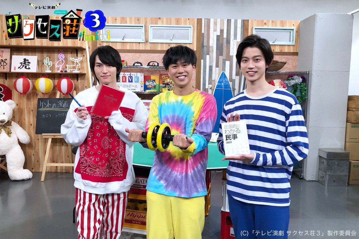 「テレビ演劇 サクセス荘3 mini」 今日深夜3時20分から「あにレコTV」内で第4回の放送です🕺 オフショットも公開💫! 勉強しているミスター(#高橋健介)に気をつかい静かにネタ作りをするゴーちゃん(#和田雅成)。 そこに日課の筋トレをしにヒッピ(#寺山武志)が現れて…。 #テレビ演劇 #サクセス荘 pic.x.com/rqkXiXnwEx