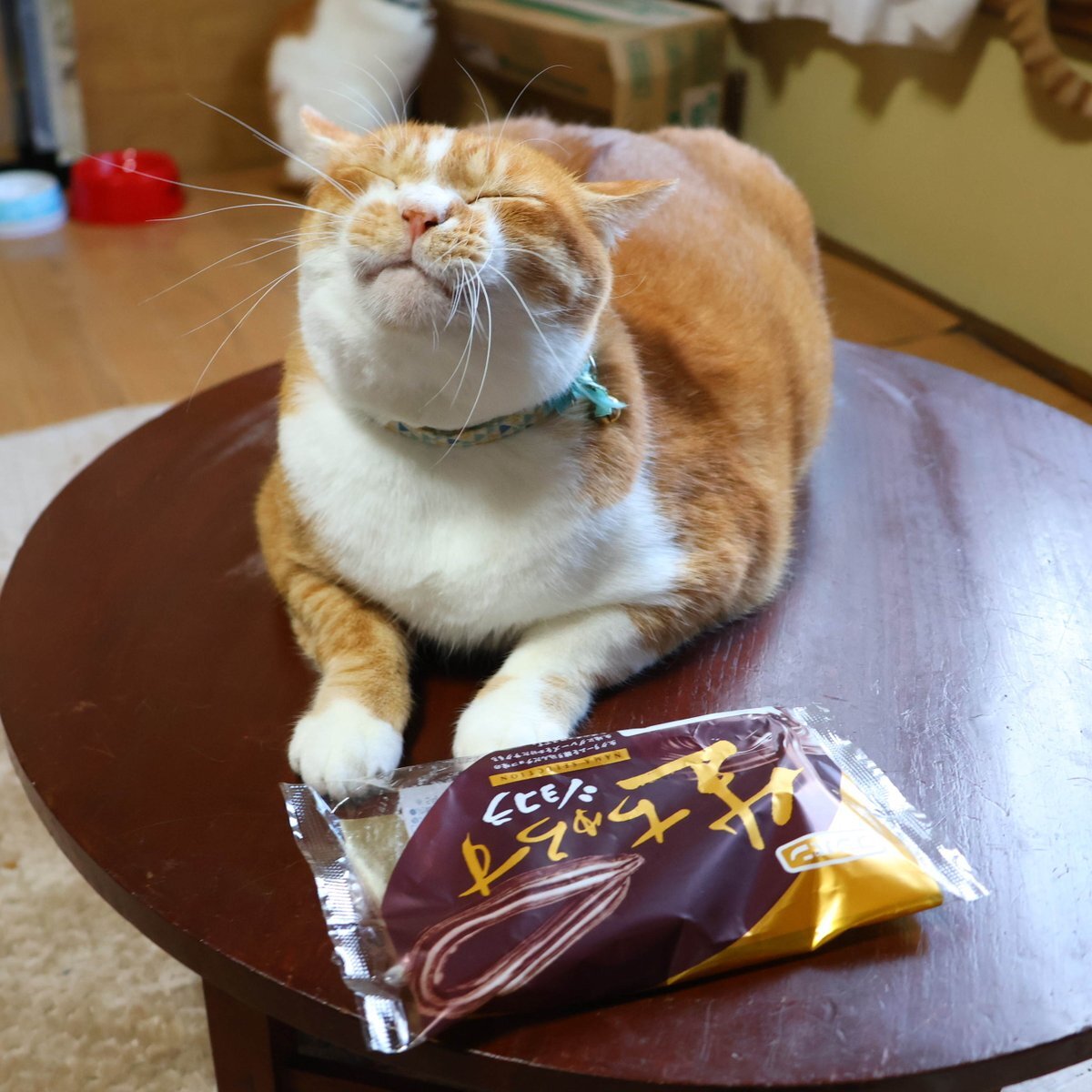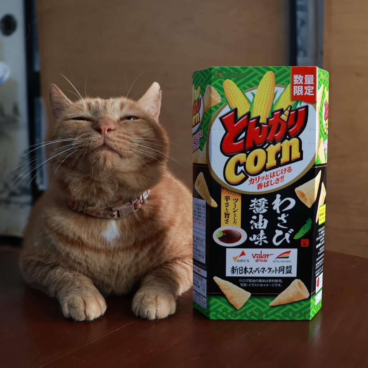 ちゃぶ台の上のとんがりコーン わさび醤油味 #とんがりコーン わさび醤油味) #ねこ # #ちゃぶ台 #テーブル #ネコ pic.x.com/cv0dVN1Unt