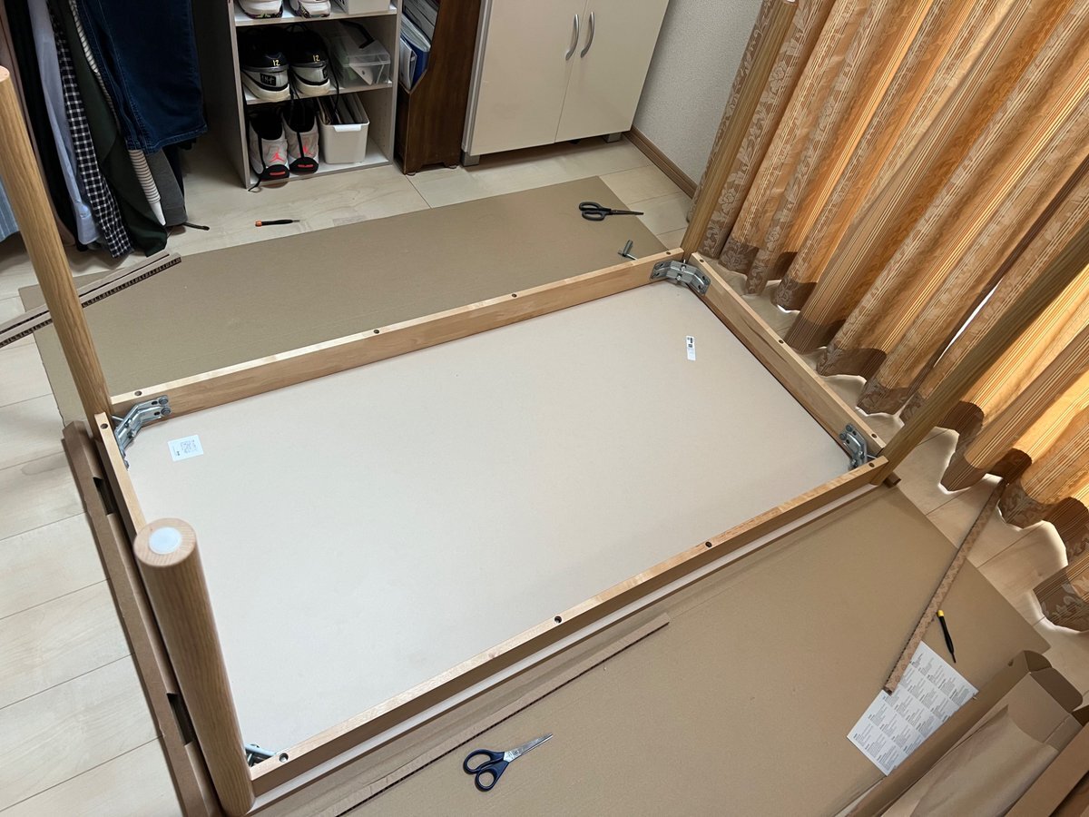 あと微調整して ひっくり返せば完成だ😁 #テーブル #組立 pic.x.com/advZyx0Ouc