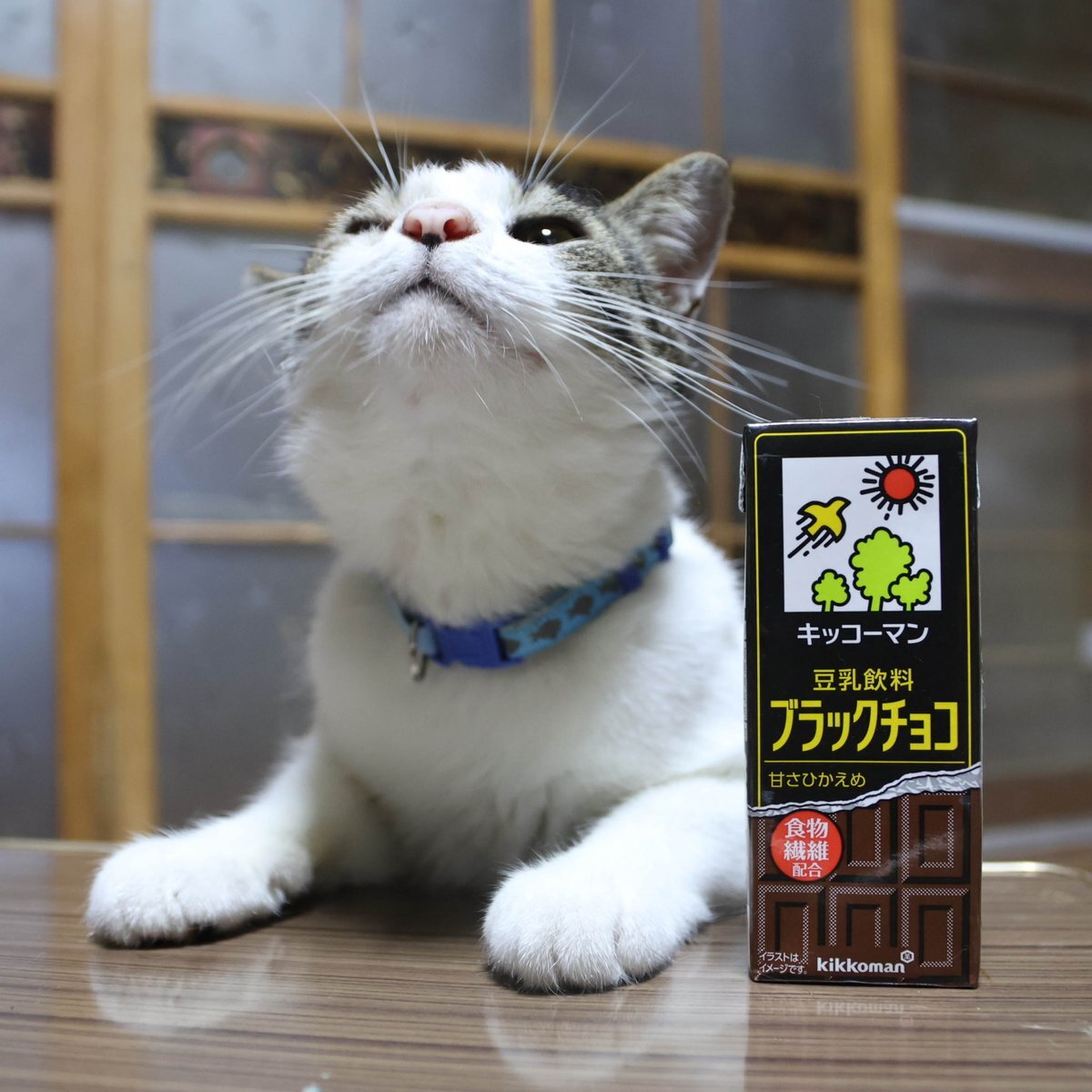 ちゃぶ台の上の豆乳飲料 ブラックチョコ #豆乳飲料 ブラックチョコ #ねこ # #ちゃぶ台 #テーブル #ネコ pic.x.com/e9J1HXUdy3