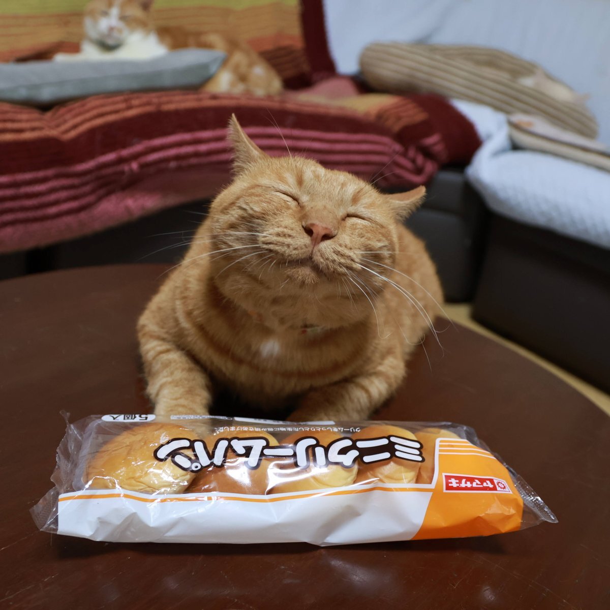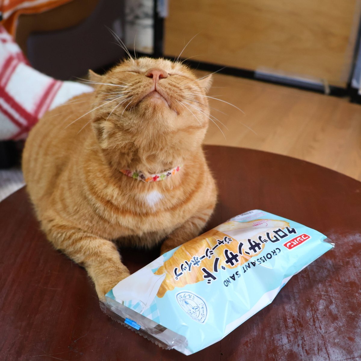 ちゃぶ台の上のクロワッサンサンド ジャージーホイップ #クロワッサンサンド ジャージーホイップ #ねこ # #ちゃぶ台 #テーブル #ネコ pic.x.com/696miIUCFR