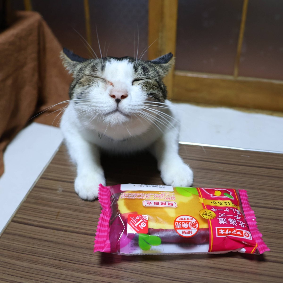 ちゃぶ台の上の北海道チーズ蒸しケーキ(紅はるか) #北海道チーズ蒸しケーキ(紅はるか) #ねこ # #ちゃぶ台 #テーブル #ネコ pic.x.com/gykZvxEguk