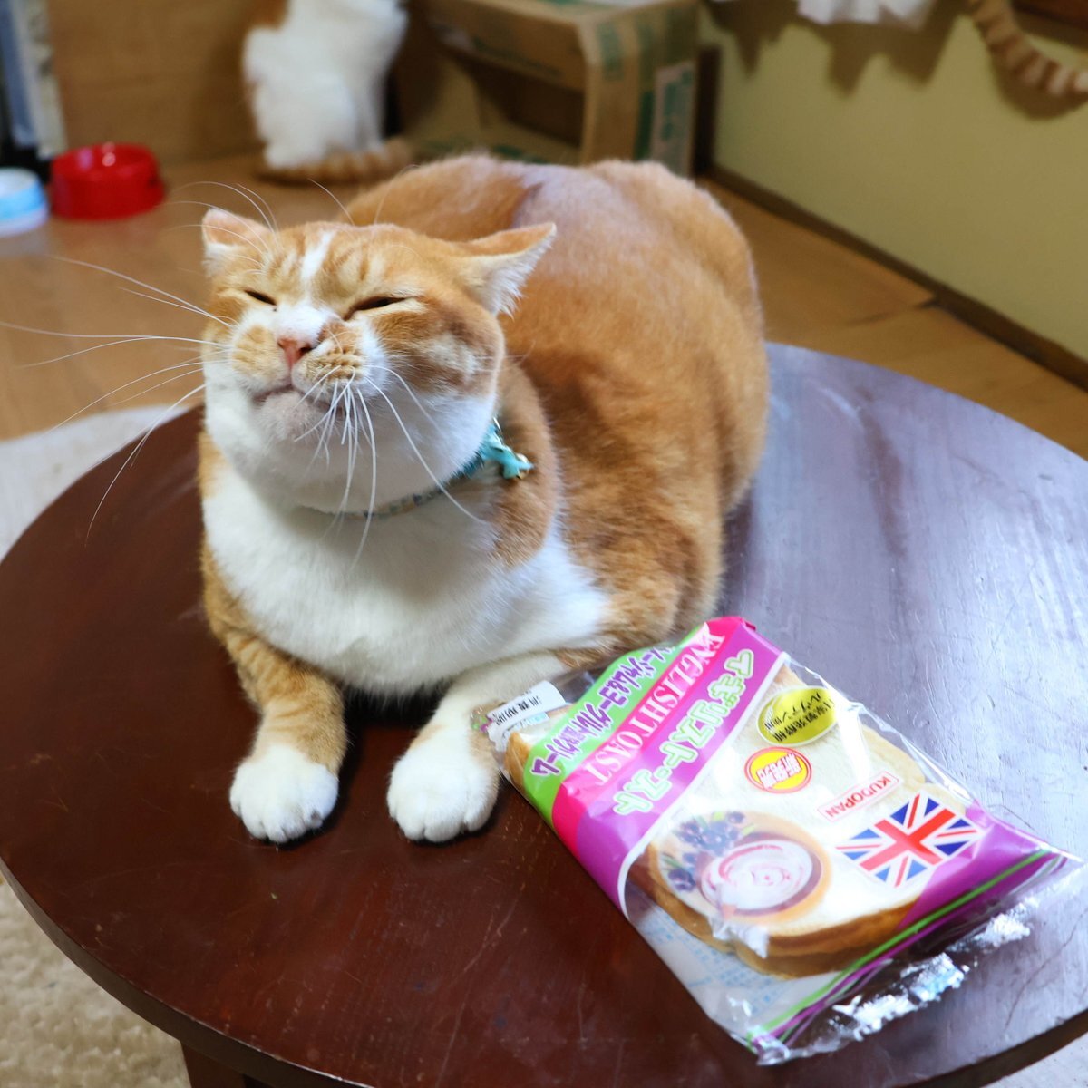 ちゃぶ台の上のイギリストースト(アサイージャム&ヨーグルト風味クリーム) #イギリストースト(アサイージャム&ヨーグルト風味クリーム) #ねこ # #ちゃぶ台 #テーブル #ネコ pic.x.com/dzy4WycCxe