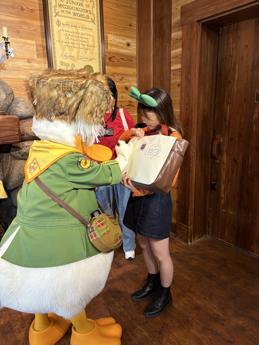私「じゃあ、そんなかっこいいデイジーからサインも…ごめん間違えた」 🪿「🪿💜🎀👉🏻(デイジーのいる方を指して)」 #ディズニー好きな人と繋がりたい pic.x.com/3RTN0jqv2K