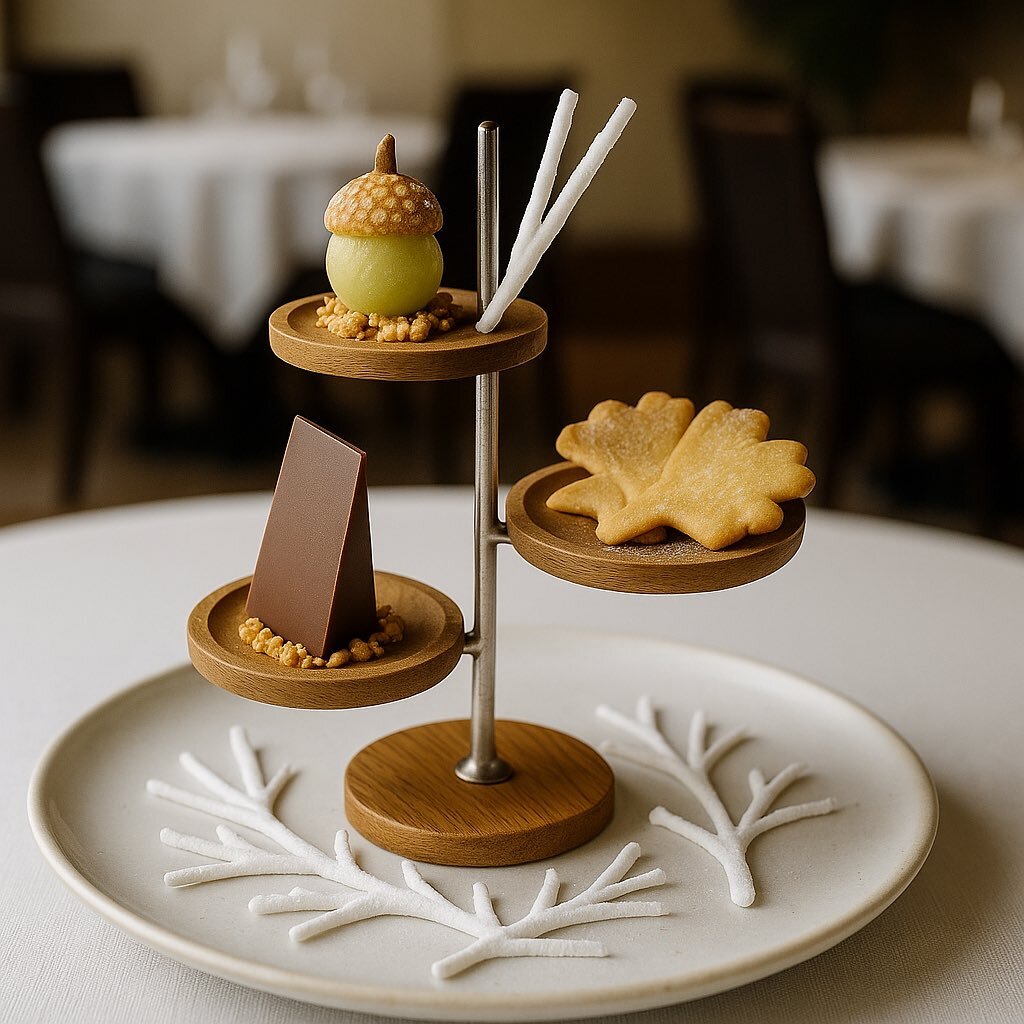 #空想フランス料理フルコース 朝霜とリスの冬支度 銀杏のかさね Réserves d’écureuil sous les ginkgos 銀杏の葉があちこちに隠れて、小菓子はリスの住む木をイメージ。 note.com/keen_violet485… 是非ご覧ください。 #レストラン #サラダ #デザート #料理写真 #銀杏 #食欲の秋 #note pic.x.com/uFQkQMDbbM
