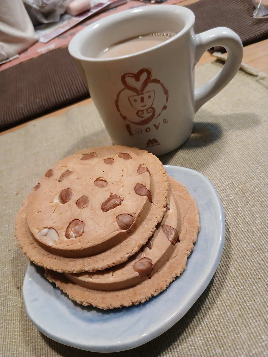 今日の夕食を作る前のデザートです。 カフェオレ☕と 厚焼きピーナッツ煎餅(岩手名物)です。 生地の堅さと、ごろごろ入ったピーナッツの歯ごたえが、最高です。 ほんのり甘い煎餅を ほんのり苦いカフェオレで。 ✨☕✨ #コーヒータイム #デザート pic.x.com/B6oBZTMsde