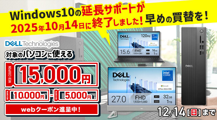 / 💻#パソコン の買い替えはお早めに💨 Windows10のサポートは10/14で終了‼️ \ #DELL 対象の《 #パソコン 》に使える⚡️最大15,000円webクーポン⚡️進呈中!! joshinweb.jp/pc/dellcp.html… ⇒ 12/14(日)まで ⬇️サポート終了について、詳しくはこちら joshinweb.jp/pc/win10_end.h… #ノートPC #デスクトップPC pic.x.com/5XxA2CY31U
