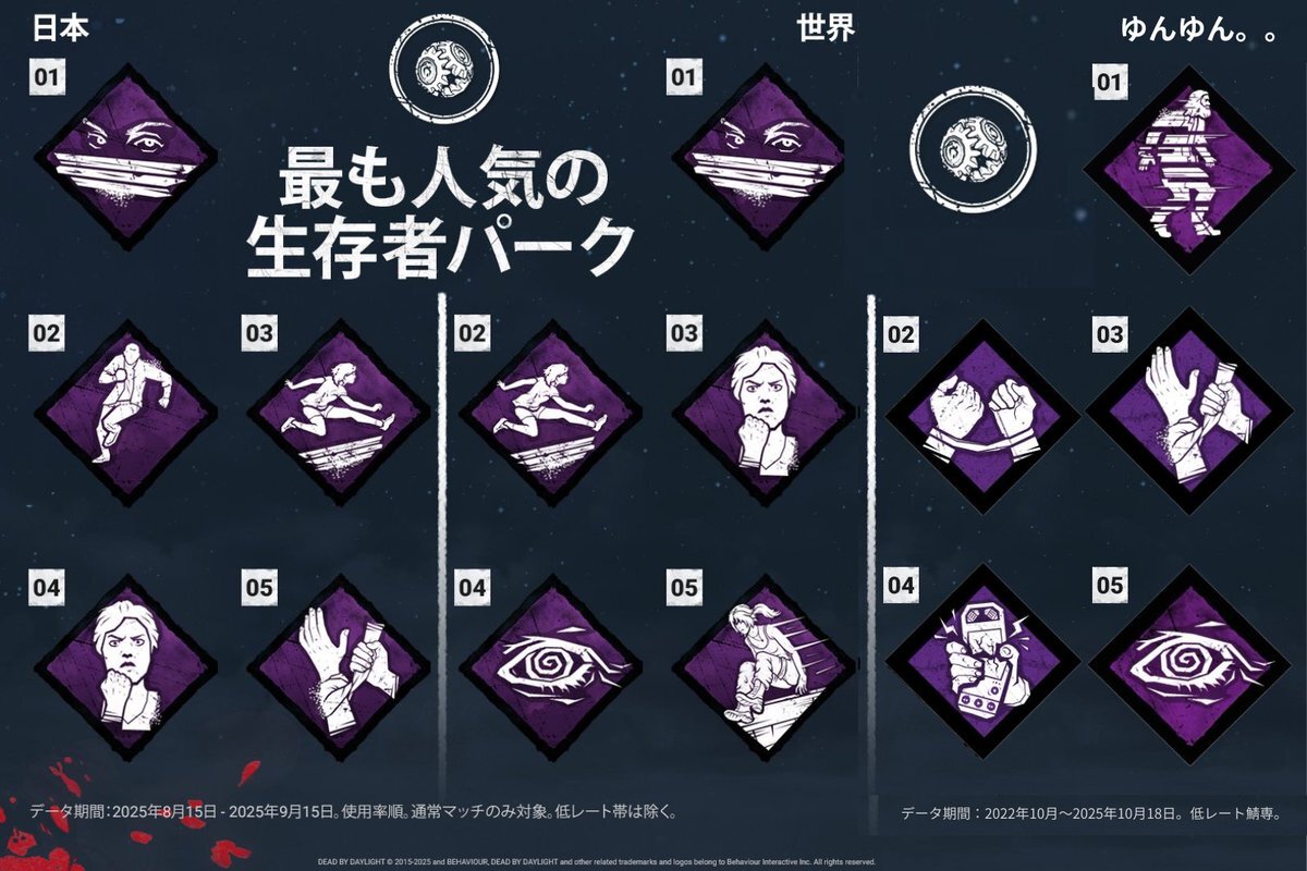 今年の #デドバの日 は皆さんからの質問を反映しました 🤝 先日募集した見てみたいゲーム内の統計データを、日本と世界を比較しつつお届けします!📊 詳しくはこちら 🔗 dbd.game/3J0zmXr search.app/gftYv