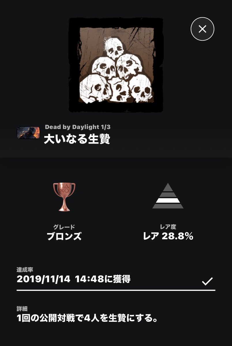 他の方のポスト見て自分も見てみよーって思ってpsアカウントのトロフィー履歴見てみたら、初の全滅は2019年でした!! そういえばリリース当初からやりたかったけどまだ18歳になってなかったから、18になった2019年から始めたんだったなって思い出しました🔪 #デドバの日 pic.x.com/bnTE5Lj8Gh