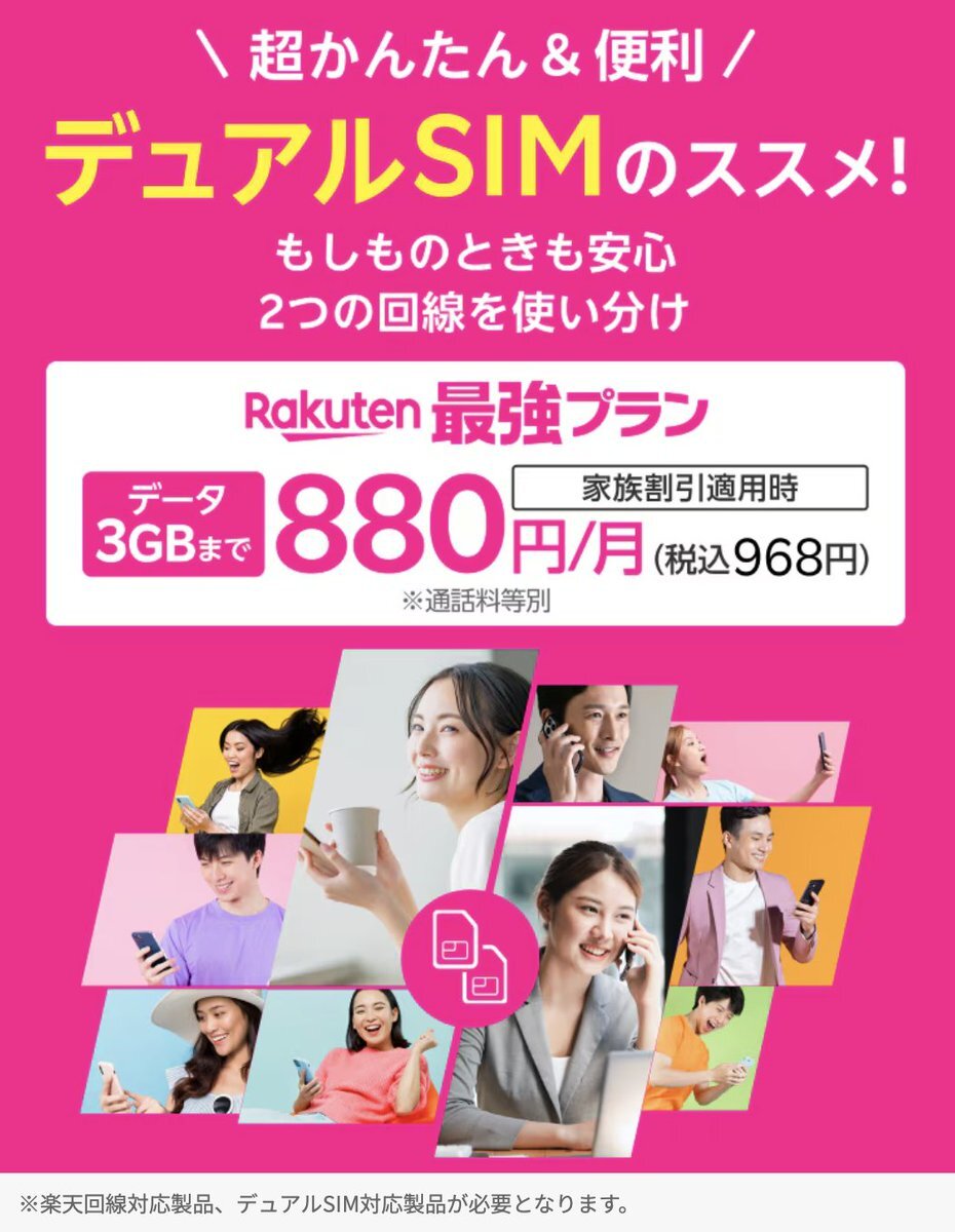 もしもの時も安心📱 楽天モバイル+他社の デュアルSIM で “つながる安心”と“安さ”を両立! 3GBなら月880円〜✨ 🔗 r10.to/hPhcDb #楽天モバイル #デュアルSIM pic.x.com/5Cv865Fvge