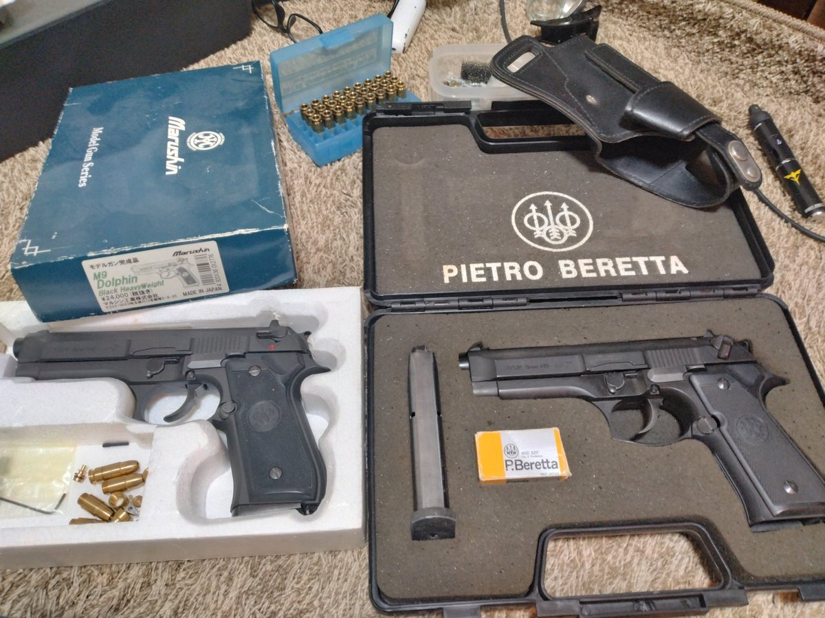 #モデルガン #マルシン #ドルフィン 両方ともHWモデルで、ぶっ放す用と置いとき用、部屋の模様替えで掃除してますがキャップ火薬が出てこない。 (¯―¯٥)ジャムらずフルオートするかな? pic.x.com/rgc65IfjnK