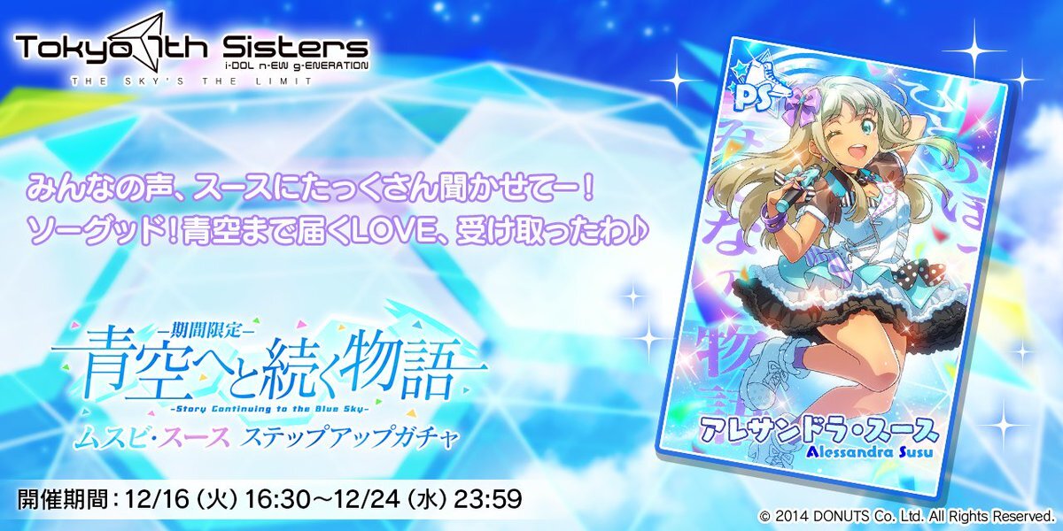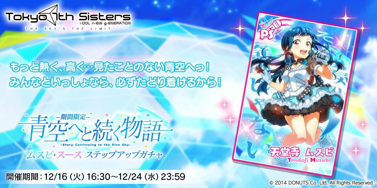 ムスビちゃん、スースちゃんの新PSカードが登場する 「期間限定 青空へと続く物語 ムスビ・スース ステップアップガチャ」開催!🎉 新カードを獲得して特別な称号をGETできます!✨ さらにStep2で新コーデアイテムを獲得できる有償ガチャも同時開催! お見逃しなく♪ #t7s #ナナシス pic.x.com/jo0nYUmA9X