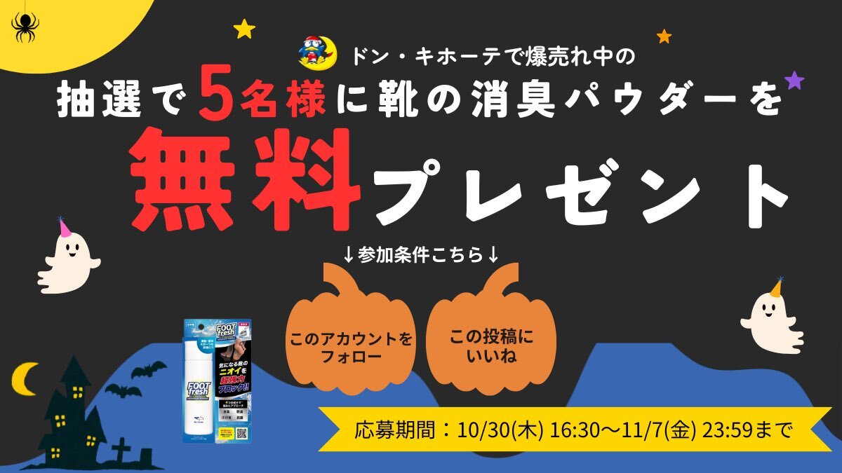 👟Trick or FOOT fresh!?🎃 靴のニオイがいたずらしてくる前に 【FOOT fresh】で撃退しよう! 今なら抽選で【5名様】にプレゼント🎁 応募方法👇 ①フォロー ②いいね 📅10/30~11/7 23:59 RTで当選確率アップ! #フットフレッシュ #消臭 #プレゼントキャンペーン #足臭 #ニオイ対策 #ハロウィン pic.x.com/qwaC2tojH1