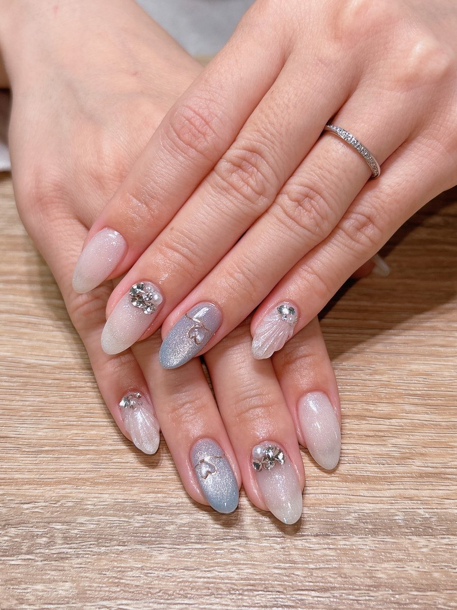 ハンド ライトコース 新色マグネットの上にハートのホロを散らばしている可愛らしいデザインです! #鎌倉ネイルサロン #大船ネイルサロン #ネイルデザイン #ネイルアート #冬ネイル #大人ネイル #定額ネイル pic.x.com/xFgZQO708Q