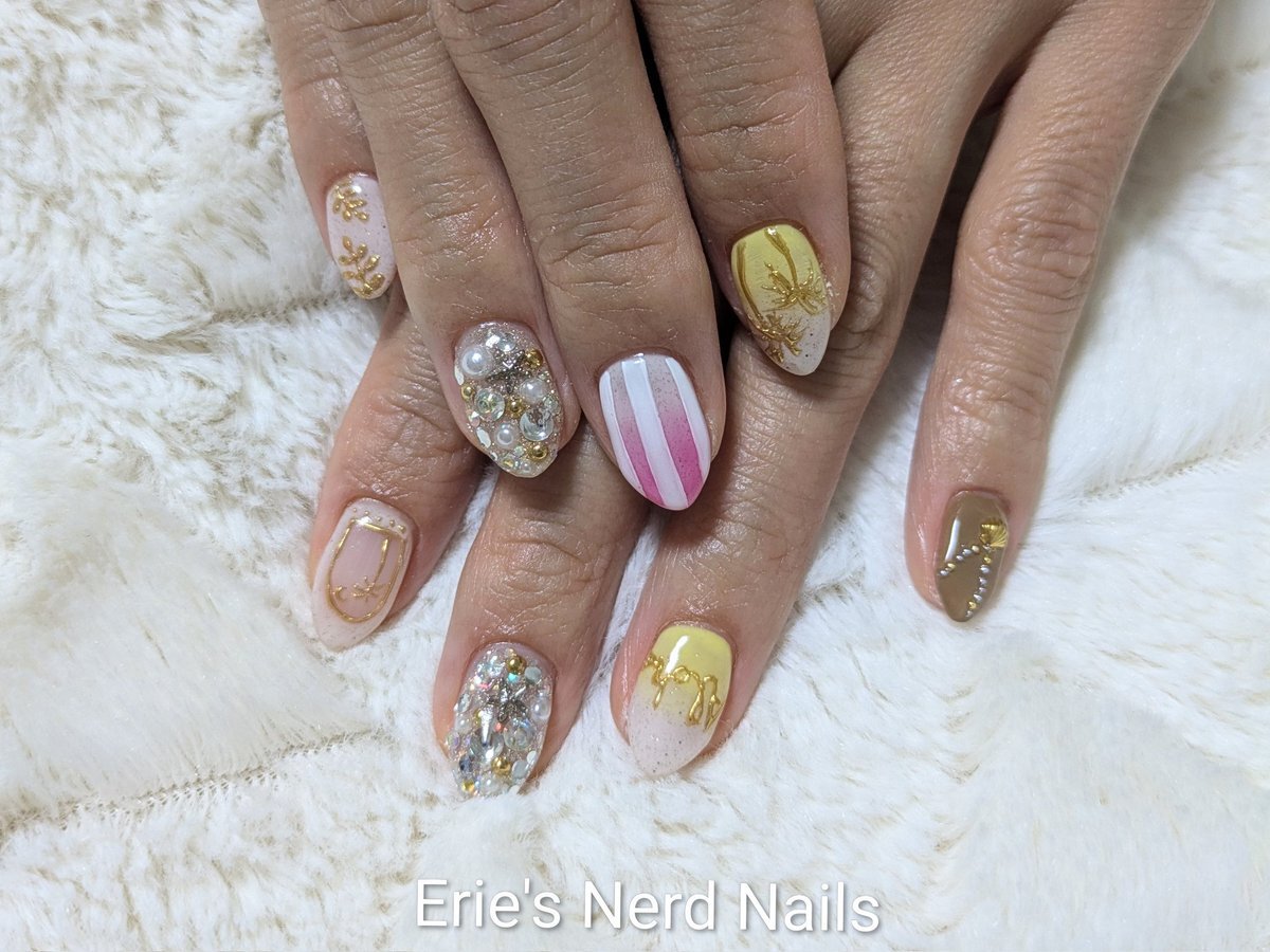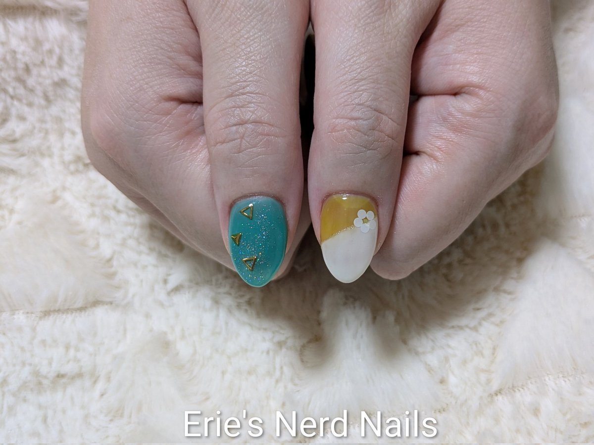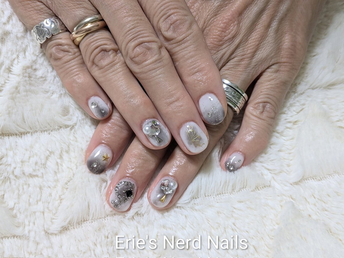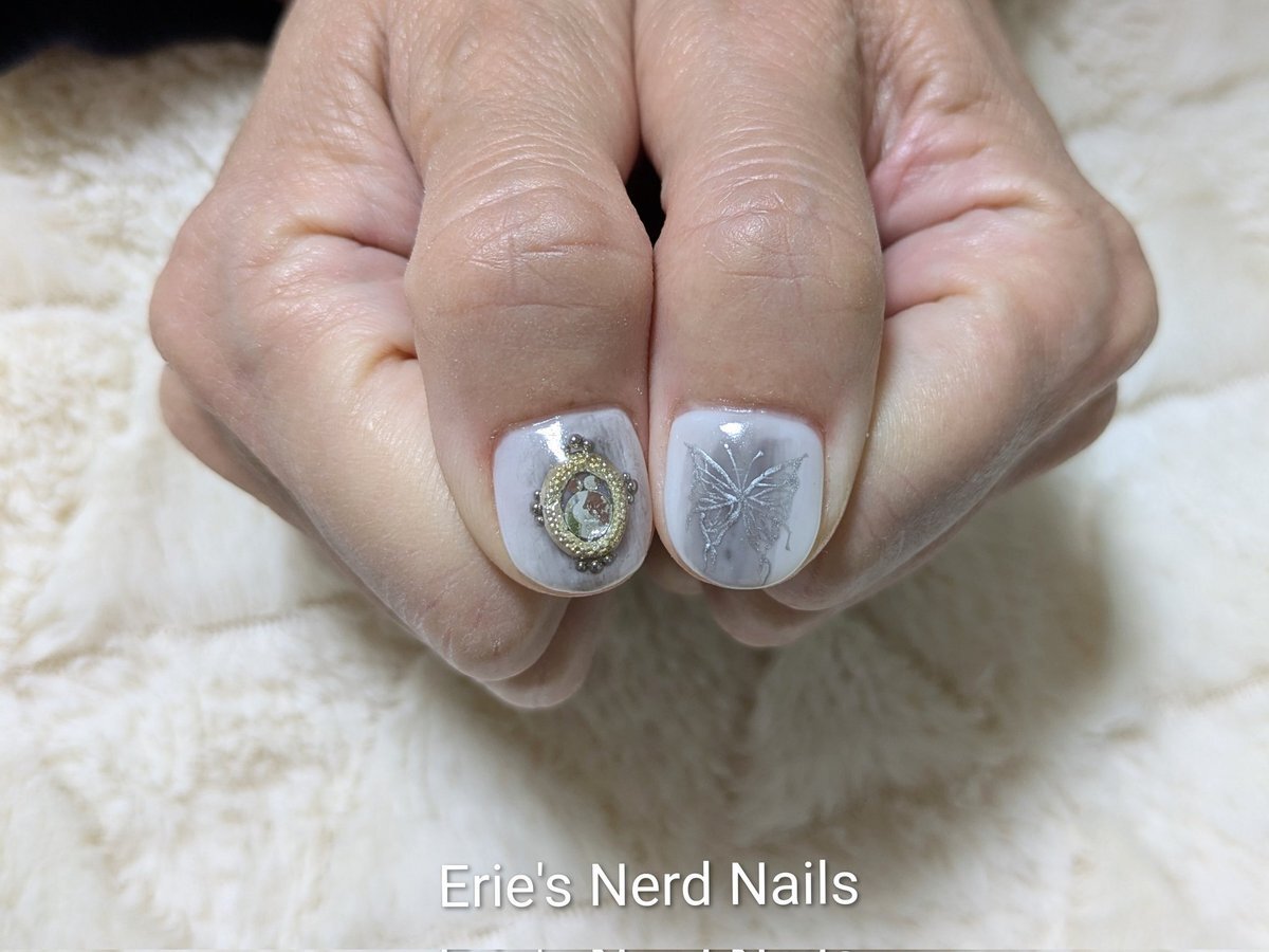 久々にセルフネイルした! 中指の銀色の飾り紐風パーツは100均の!安くて可愛い! 親指のも100均のネイルテープ使ってみた! 模様は頑張って手書きしたヤツ!🐥ヘタクソウンコナメクジ #セルフネイル #ネイル pic.x.com/5XfvjjK3xF