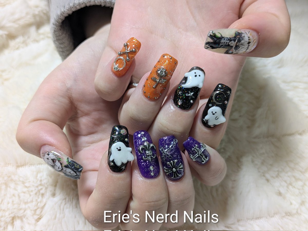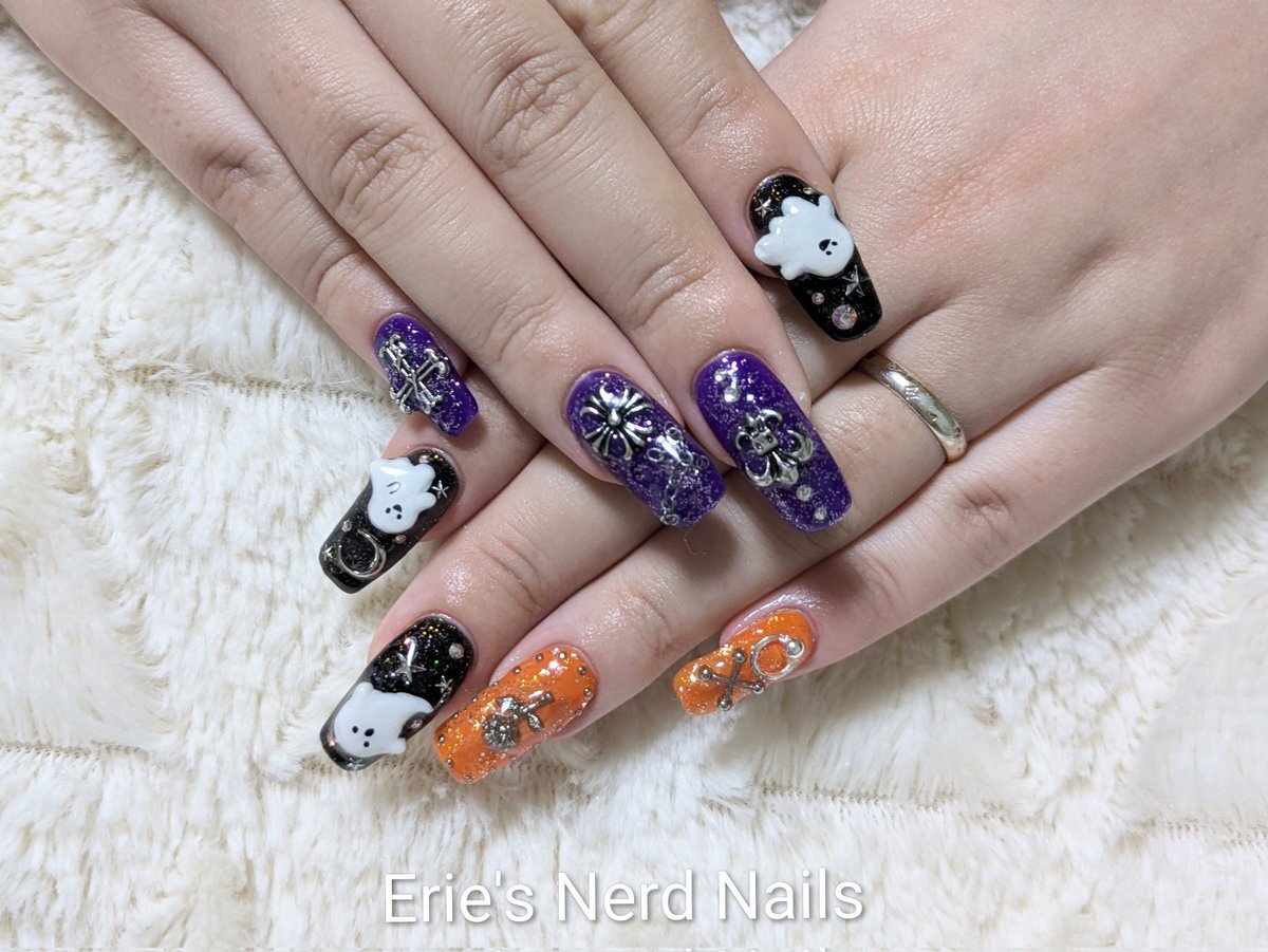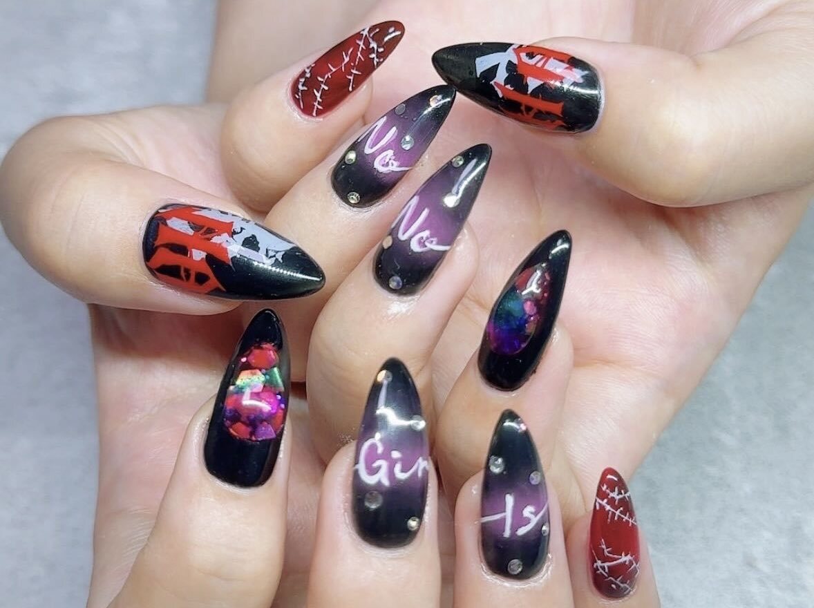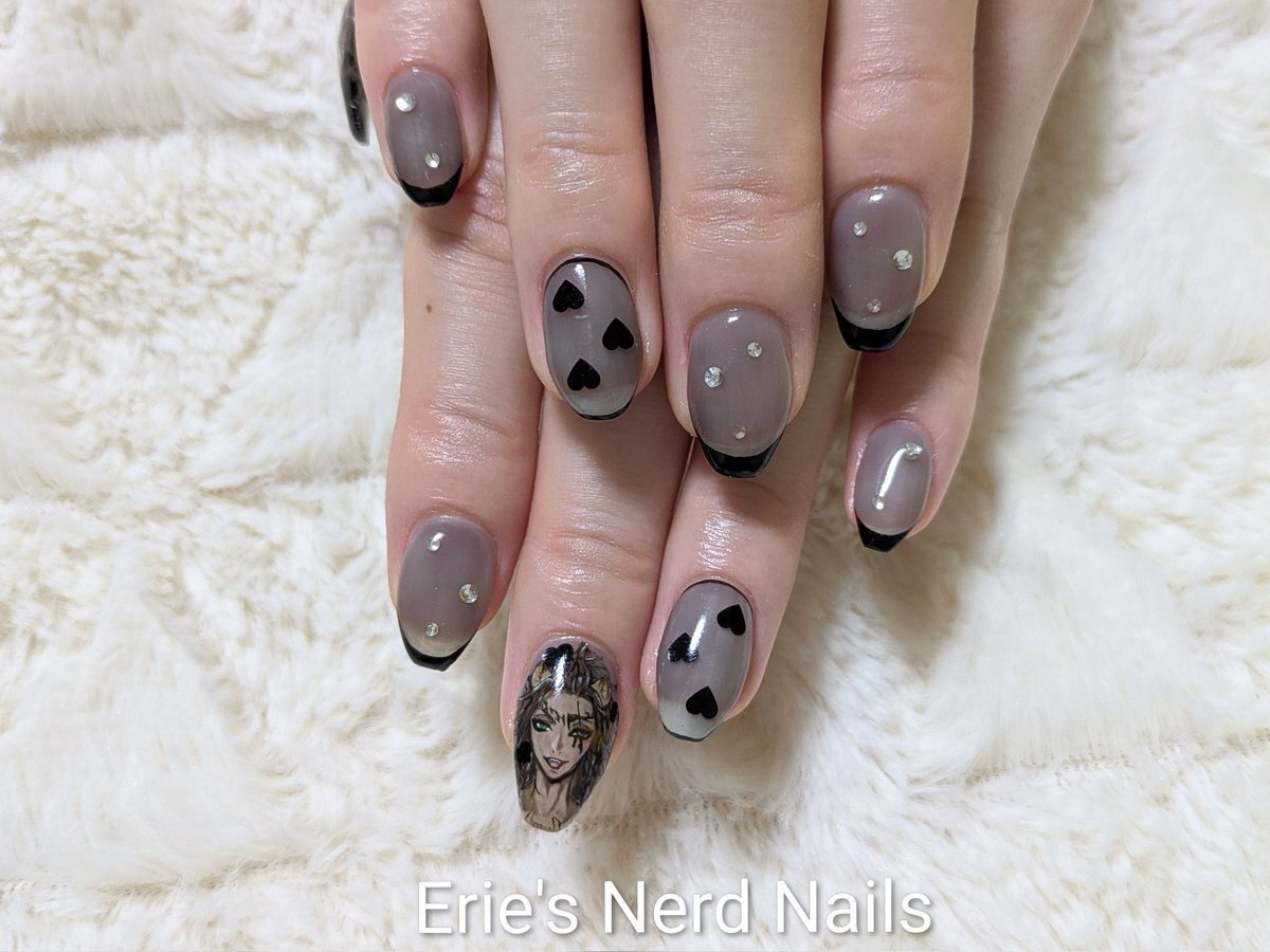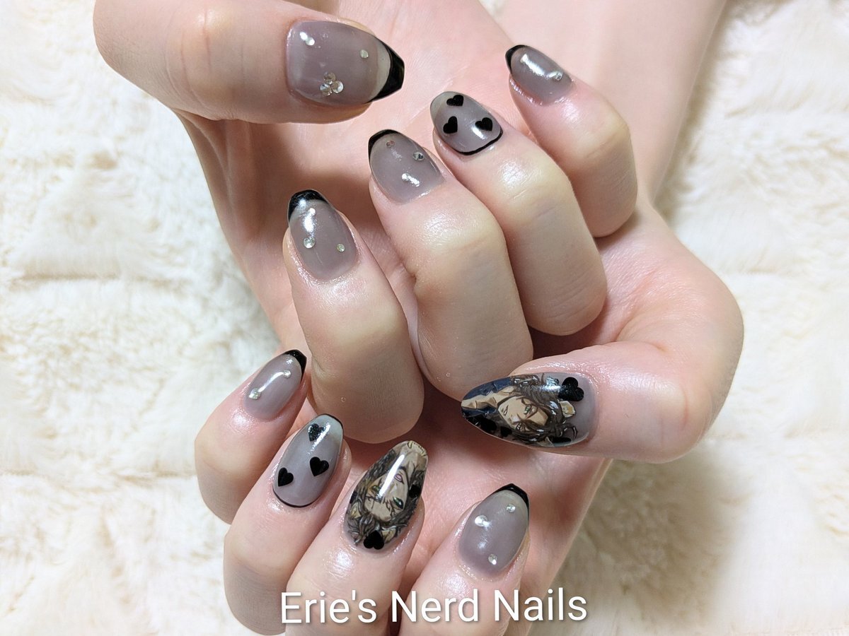 久々にセルフネイルした! 中指の銀色の飾り紐風パーツは100均の!安くて可愛い! 親指のも100均のネイルテープ使ってみた! 模様は頑張って手書きしたヤツ!🐥ヘタクソウンコナメクジ #セルフネイル #ネイル pic.x.com/5XfvjjK3xF