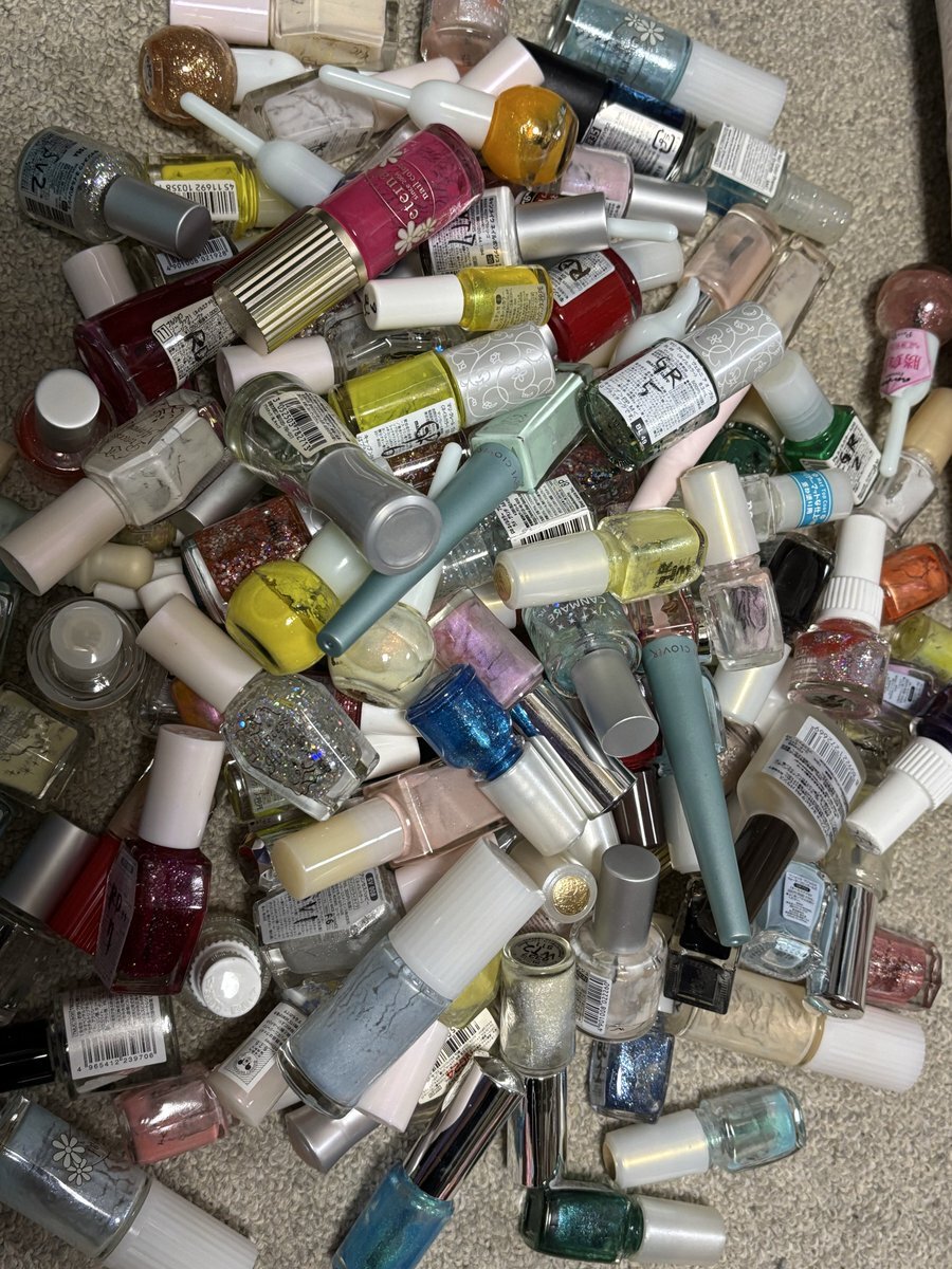 毎週土日になると部屋を片付ける片付ける言うだけ詐欺なんだけど やっと少し整理していたら、古の空ネイルが大量に出てきた💦 今でもあるブランドから、今はもう無いブランドのまで色々。 瓶のデザイン変わったり、量が減ったり色々だなぁ。懐かしい。 ゴミだけど… 捨て方分からなくて放置💦 #ネイル pic.x.com/d0AiSvrfru