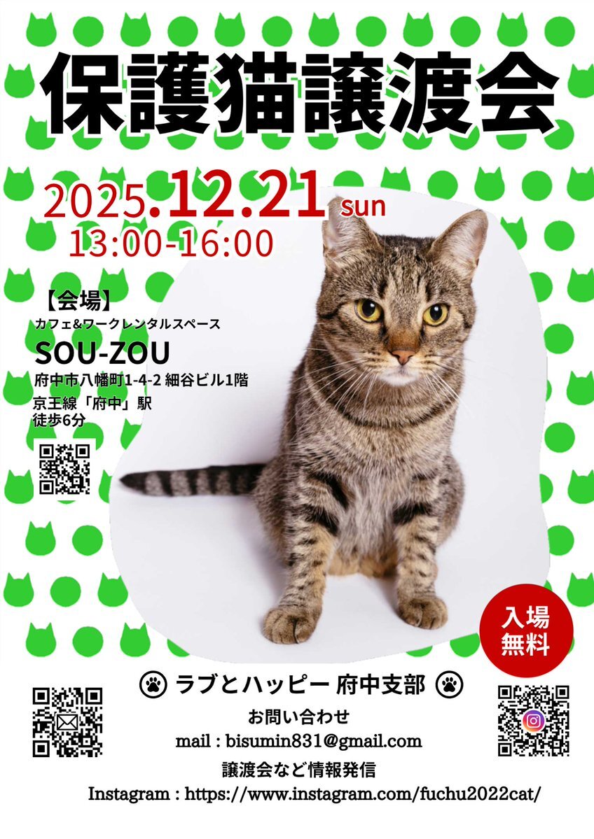 🐾🎄 #ラブとハッピー府中 #保護猫譲渡会 12/21! 仔猫いっぱい&甘えん坊ヤング猫も参加🐱💗 写真以上の可愛さ、会えばすぐ分かります…! 📍12月21日(日)13:00〜16:00 sou-zou(府中駅徒歩6分) sou-zou.jp あなたの“運命の子”に会いに来てね🐾🎁 #ネコスタグラム pic.x.com/CVSosi6csG