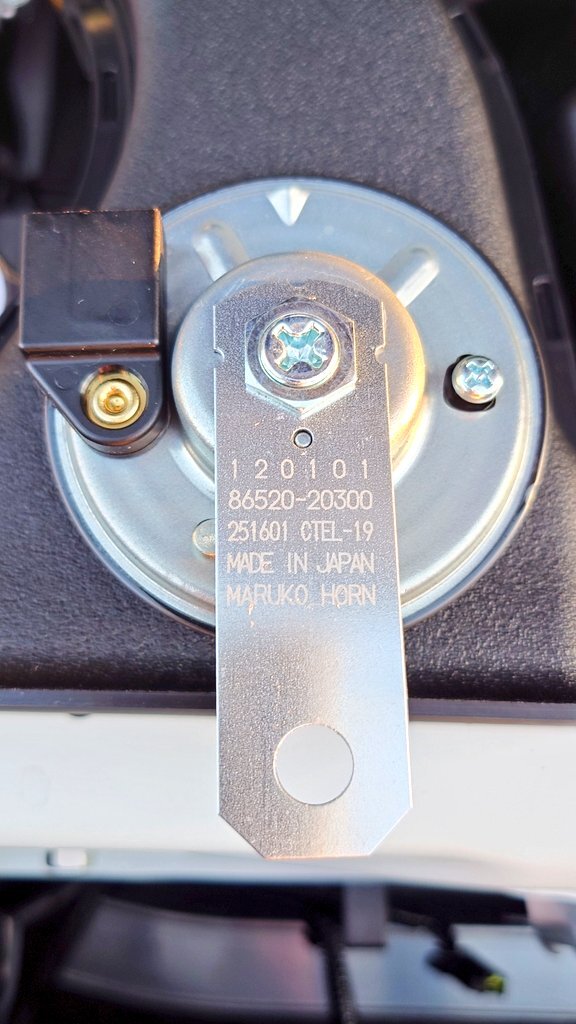 最後に… ⑧「標準装備のクラクション」 初期型では根元のプレートがブラックだったのに、改良型の現車ではシルバーでした。 ええ、知っていても何の自慢にもならない発見です。 #トヨタ #ノア #NOAH #90系 #改良型 #一部改良 pic.x.com/VbHEF0FhLR x.com/commedeshumain…