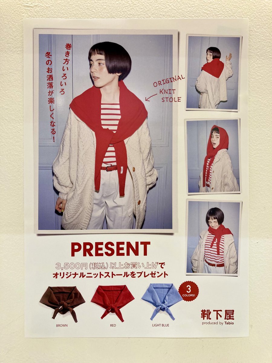 \ニットストール🧣プレゼント/ 本日から、税込¥3,500以上購入の方、先着でニットストールをプレゼント🎁✨ コートの上から巻いても◎、バラクラバとして使っても◎ オシャレの幅が広がるアイテムなので、是非手に入れてくださいね! #靴下屋吉祥寺 #ノベルティ #プレゼント #ストール pic.x.com/iElx1WASD6