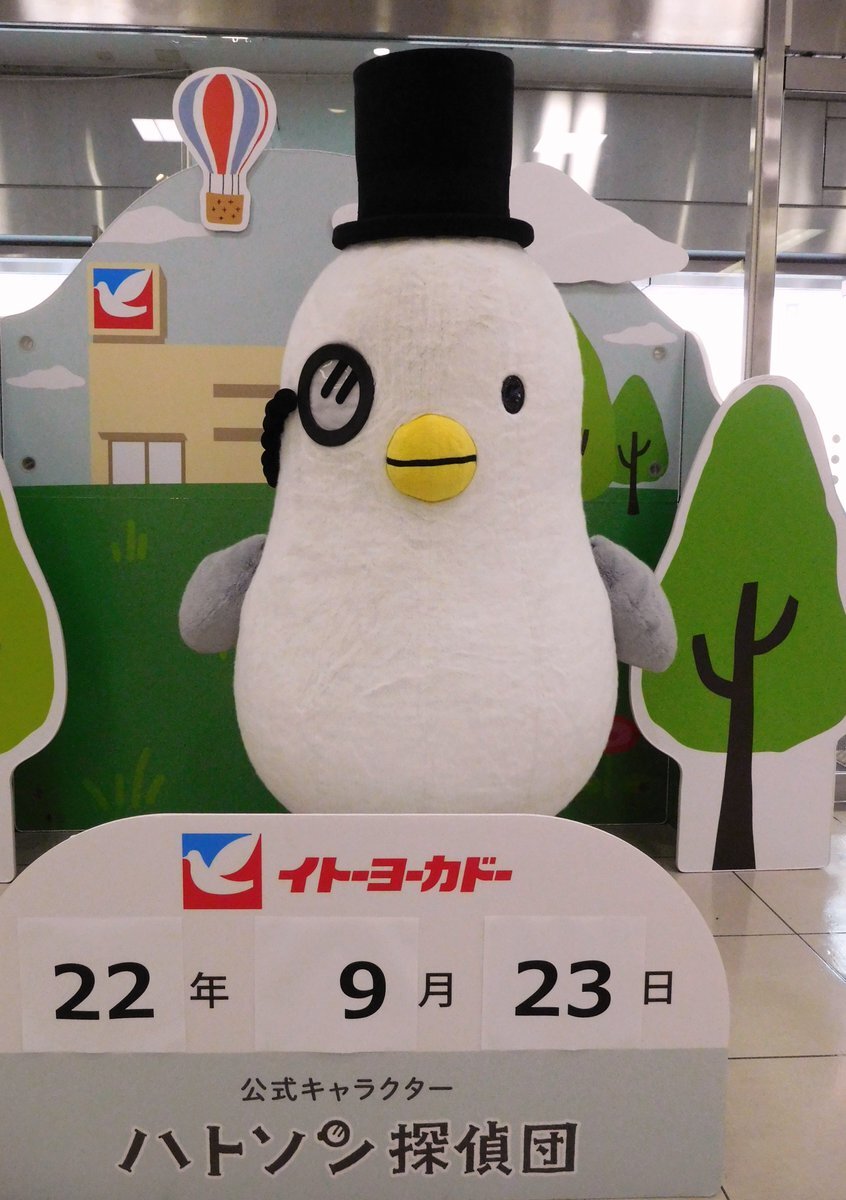 ☆本日の #ハトソン くん、グリーティング写真♪ 📷2022.9.23.撮影 イトーヨーカドー伊勢原店リニューアル記念・グリーティングイベントで会えました👌👌 イトーヨーカドー公式 #ハトソン探偵団 キャラクター ヽ(=´▽`=)ノ〜☆彡。 pic.x.com/RhCK45uEbv