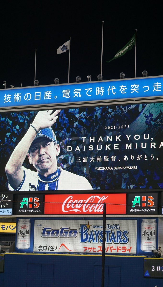 三浦監督5年間ありがとうございました😭 三浦政権みんなに何か言われてても自分は好きでした🥹‼️ハマの番長ずーっと大好きです👊🏻‼️お疲れ様でした🙇 共に優勝とは叶わなかったですけど共に日本一できてよかったです🥹 これからも応援してます💪 #三浦監督 #ハマの番長 pic.x.com/ssJtTaMyMu