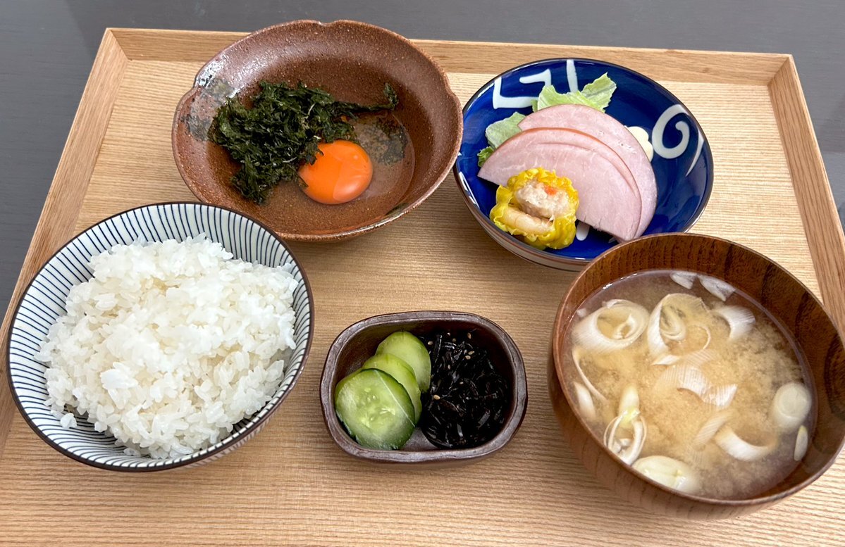 おうちごはん🍚 アオサのTKG、胡瓜の浅漬け、サラダと葱の味噌汁☺️久しぶりのTKGうまい♪ #TKG #ハムサラダ #朝食 #おうちごはん #マレーシア pic.x.com/1J8cUyUoY8