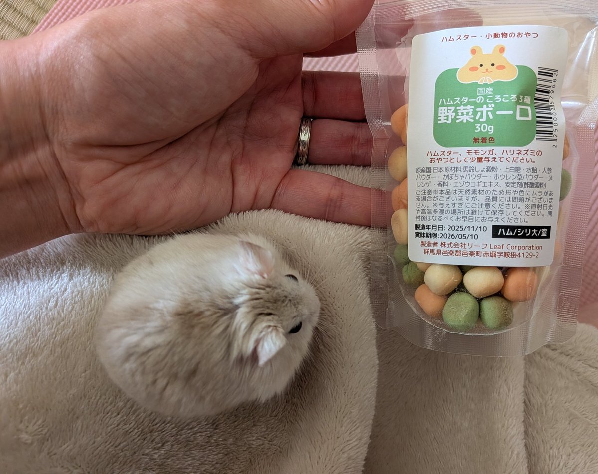 今日のたまご🐹 🐹飼い主がローデンツのお土産に チャーム小石川さん @charm_koishikawa のおやつを買って来てくれまちた✨ 早速野菜ボーロ食べまち! …あれ、1個だけでちか?お色が違うボーロもありまちよ?? #ハムスター #ハムスターのいる暮らし #ハムスター好きと繋がりたい pic.x.com/uay1dKCnWJ