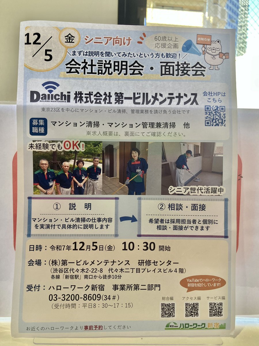 こんにちは‼︎#第一ビルメンテナンス HRチームです。 当社では #ハローワーク とも連携し、 #シニア 向けの合同説明会や面接会を実施しております😊 応募前に働くイメージが湧くように、実演や道具の使い方も実施しています‼︎ #ビルメンテナンス #ビルクリーニング #説明会 #採用活動 #アルバイト pic.x.com/HC2q4rWHIC