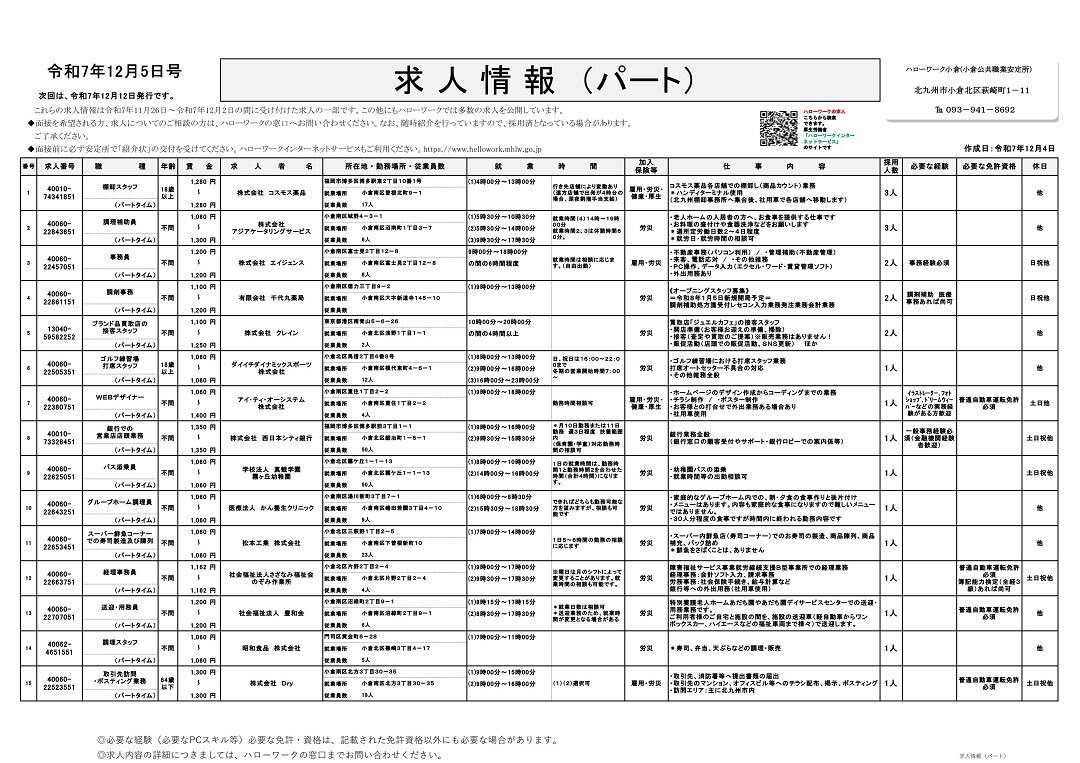 \パート求人情報誌発行/ ハローワーク小倉ホームページでは、過去1週間以内に受理した求人をご覧いただくことができます! #求人 #求人情報 #ハローワーク jsite.mhlw.go.jp/fukuoka-roudou… pic.x.com/R3eIoY6icO