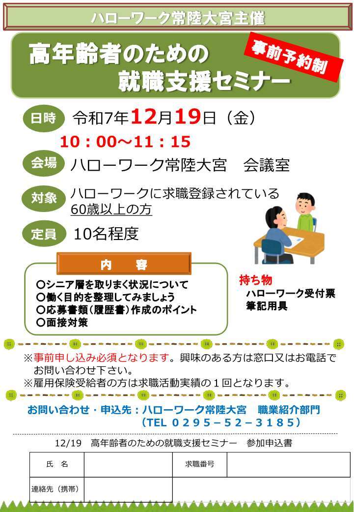 ✨求職者の皆様へ✨ #高年齢者 のための #就職支援セミナー を開催します 日時:12月19日(金)10:00~11:15 会場:#ハローワーク常陸大宮 会議室 対象:#ハローワーク に求職登録されている60歳以上の方 定員:10名程度(要予約) ご参加おまちしてます🙌 詳細はチラシをご覧ください⬇️ pic.x.com/zWB88F0BVJ