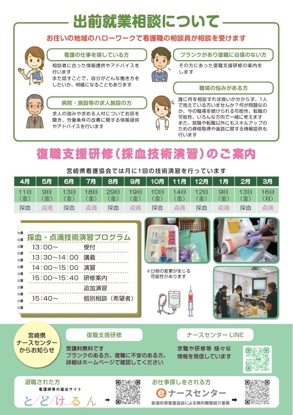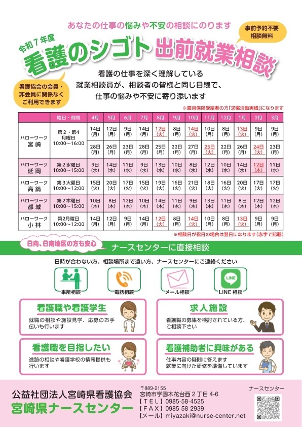 #看護職 への就職を考えているけど、応募できずに困っている・悩んでいる方へ そのお困り事・悩み事を #宮崎県ナースセンター の相談員に話してみませんか? #ハローワーク で出前就業相談実施中😊 事前予約不要・相談無料、詳しくはチラシをご確認ください。 pic.x.com/LhPmOa6jby