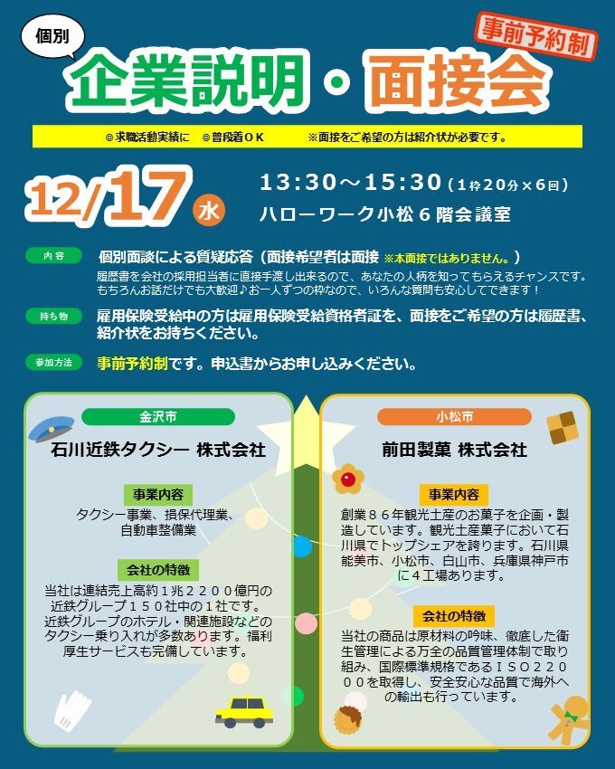 12月の #会社説明会 11日は #しごとプラザ帯広 12日は #ハローワーク 帯広2階大会議室 それぞれ13時30分~15時30分 (最終受付は15時20分です) まずはこの両日の参加企業ご紹介 YouTubeにまとめました! ぜひ足をお運びください!! youtube.com/shorts/7cbomDI…