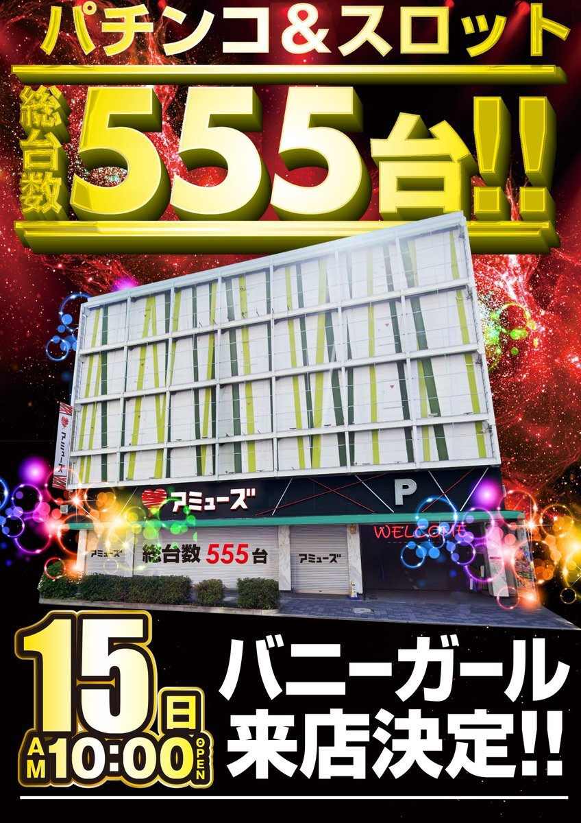 本日もご来店ありがとうございました! 明日15日は総台数555台の アミューズへ“必ず”ご来店下さい🖐️ 《バニーガール来店》です👯 ジャグラー景品🤡も連日絶賛販売中! 明日の入場抽選は【9:20】スタートです⏰ 沢山のご来店お待ちしております! #アミューズ河原町丸太町店 #バニーガール pic.x.com/hX7qNF3nAz