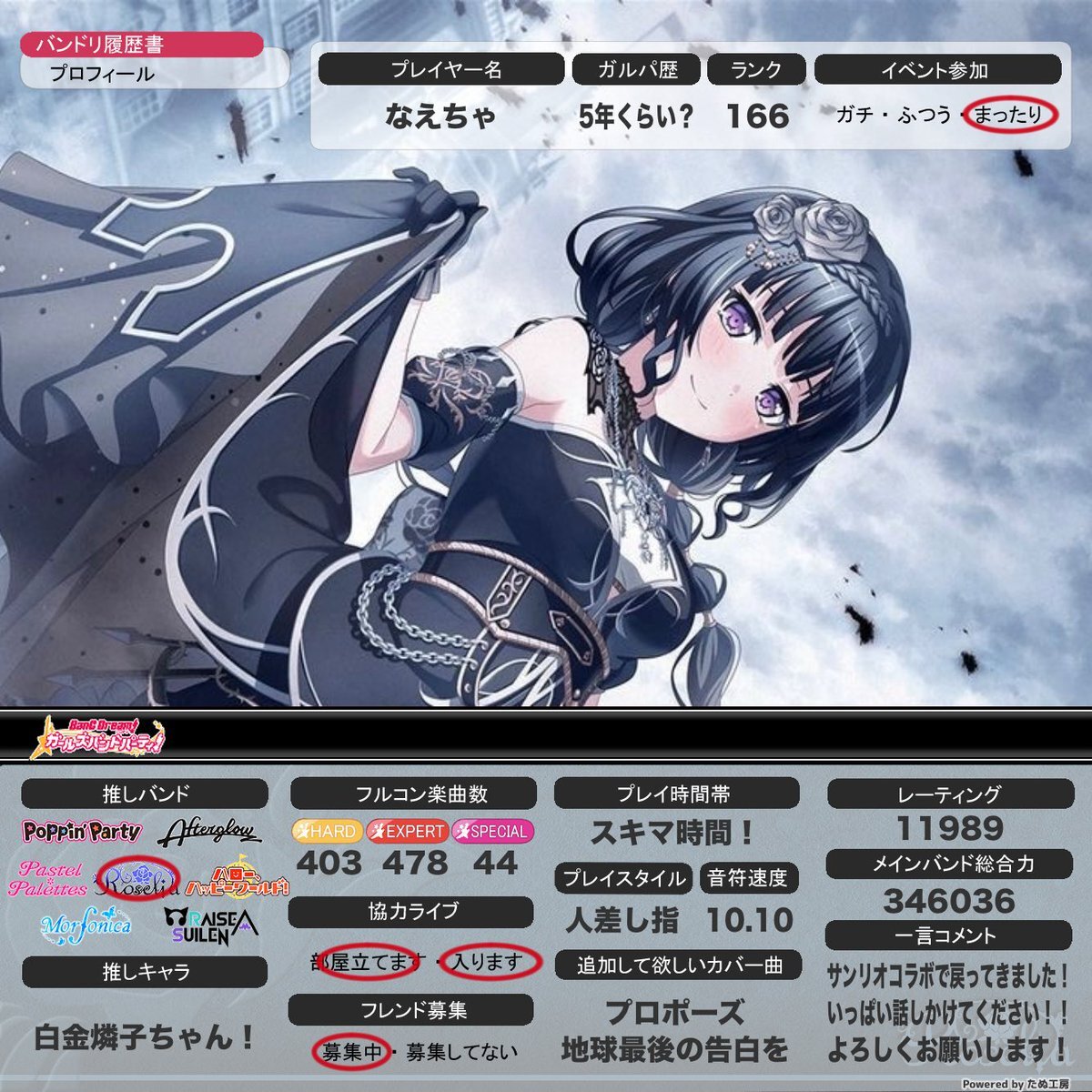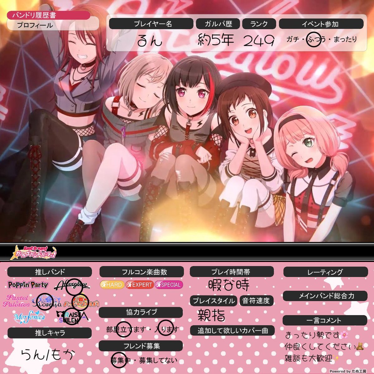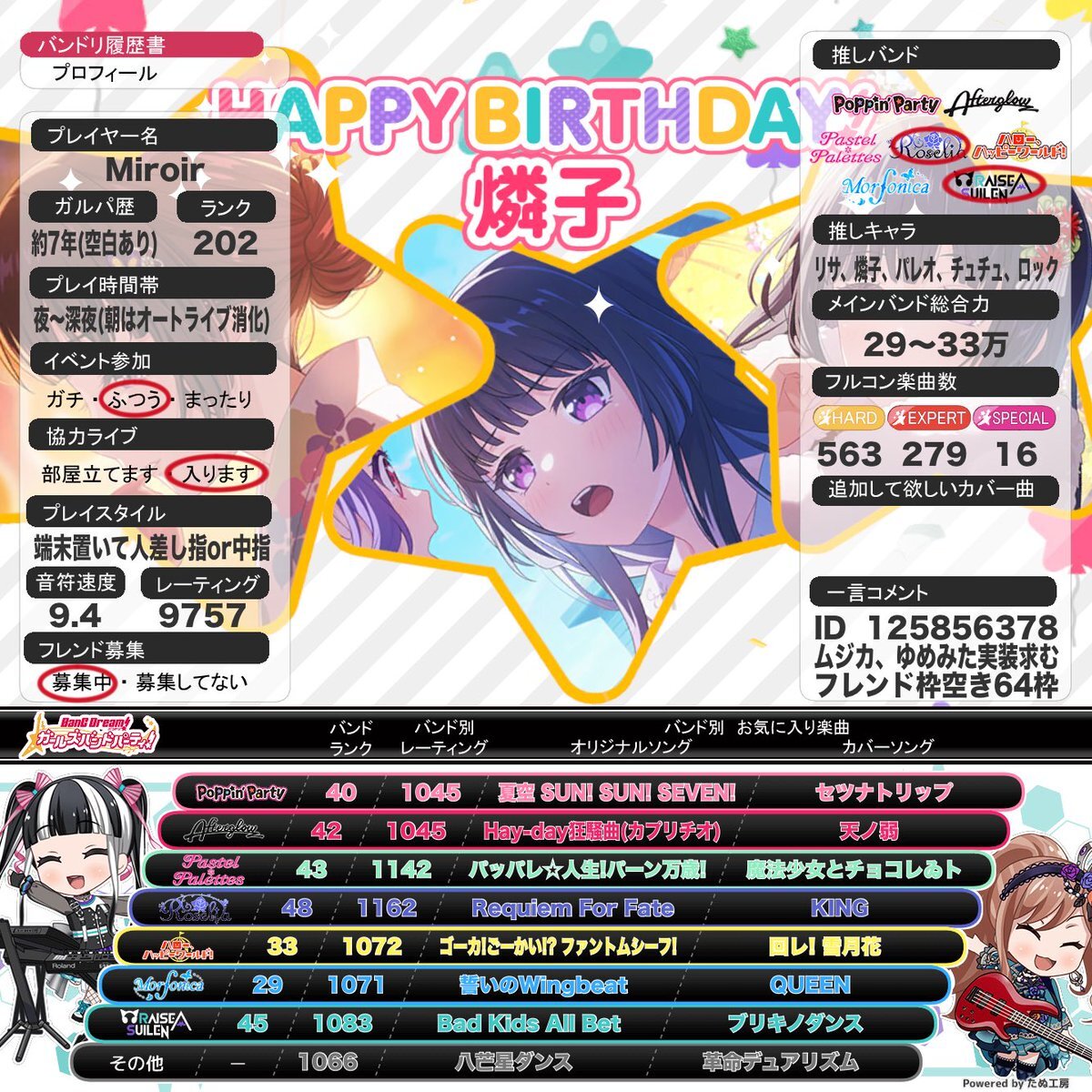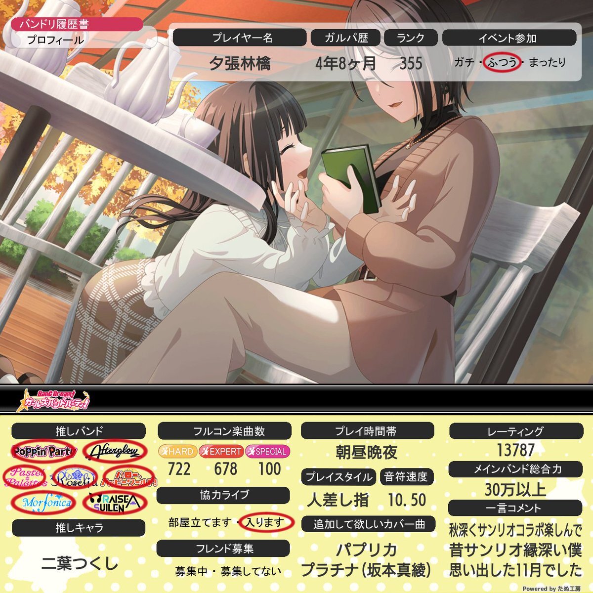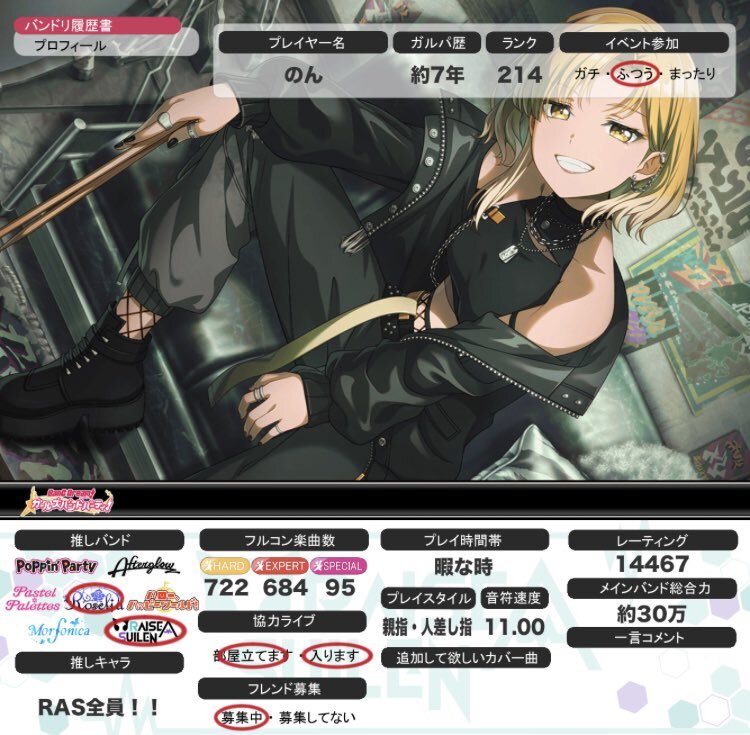 2025年11月版 ガルパ履歴書更新しました。 フレンド希望の方は返信またはDMにてお待ちしています。(枠がほぼないため) フレンドID:121434258 #ガルパ #バンドリ #ガルパ履歴書 #バンドリ履歴書 #バンドリーマーと繋がりたい #バンドリーマーさんと繋がりたい pic.x.com/cf7iXWkSfv