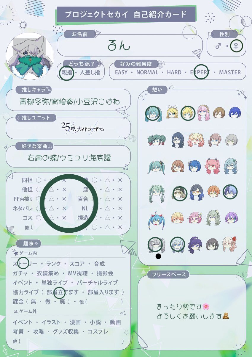 🏷𓈒𓏸︎︎︎︎Tag 写真撮ったり 音ゲーしたりして生きてます🍀 仲良くしてください🧸 #バンドリーマーと繋がりたい #バンドリ履歴書 #バンドリ好きと繋がりたい #プロセカ履歴書 #プロセカ好きと繋がりたい #プロセカ自己紹介カード #RTした人全員フォローする #いいねした人全員フォローする
