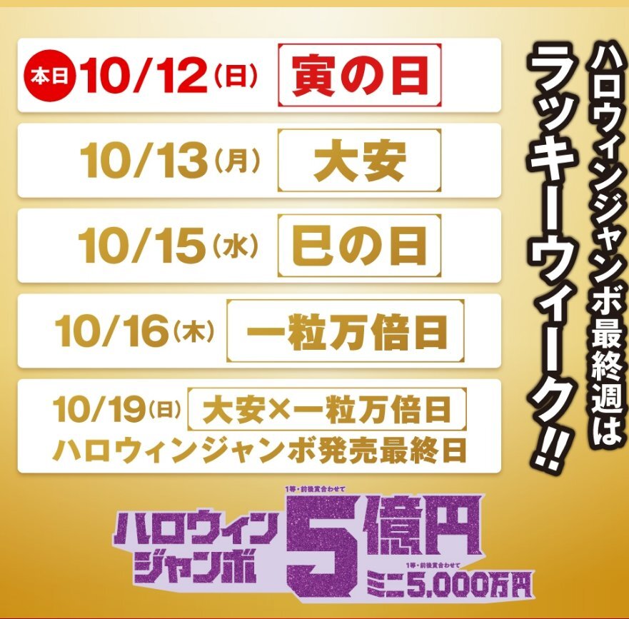 共同購入のお知らせ⋆📢⋆ 本日は寅の日- ̗̀🐯 ̖́- ⟡.·*. 億り人 Halloweenミニ2025 現在119枚/40名参加✨ みんなで協力して高額当選! 一人1枚からOK❣️ ご参加お待ちしております♬.*゚ #パイプ takarakuji-official.jp/ec/group/join/… pic.x.com/sxd22x7ROa
