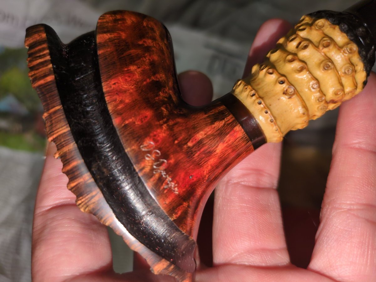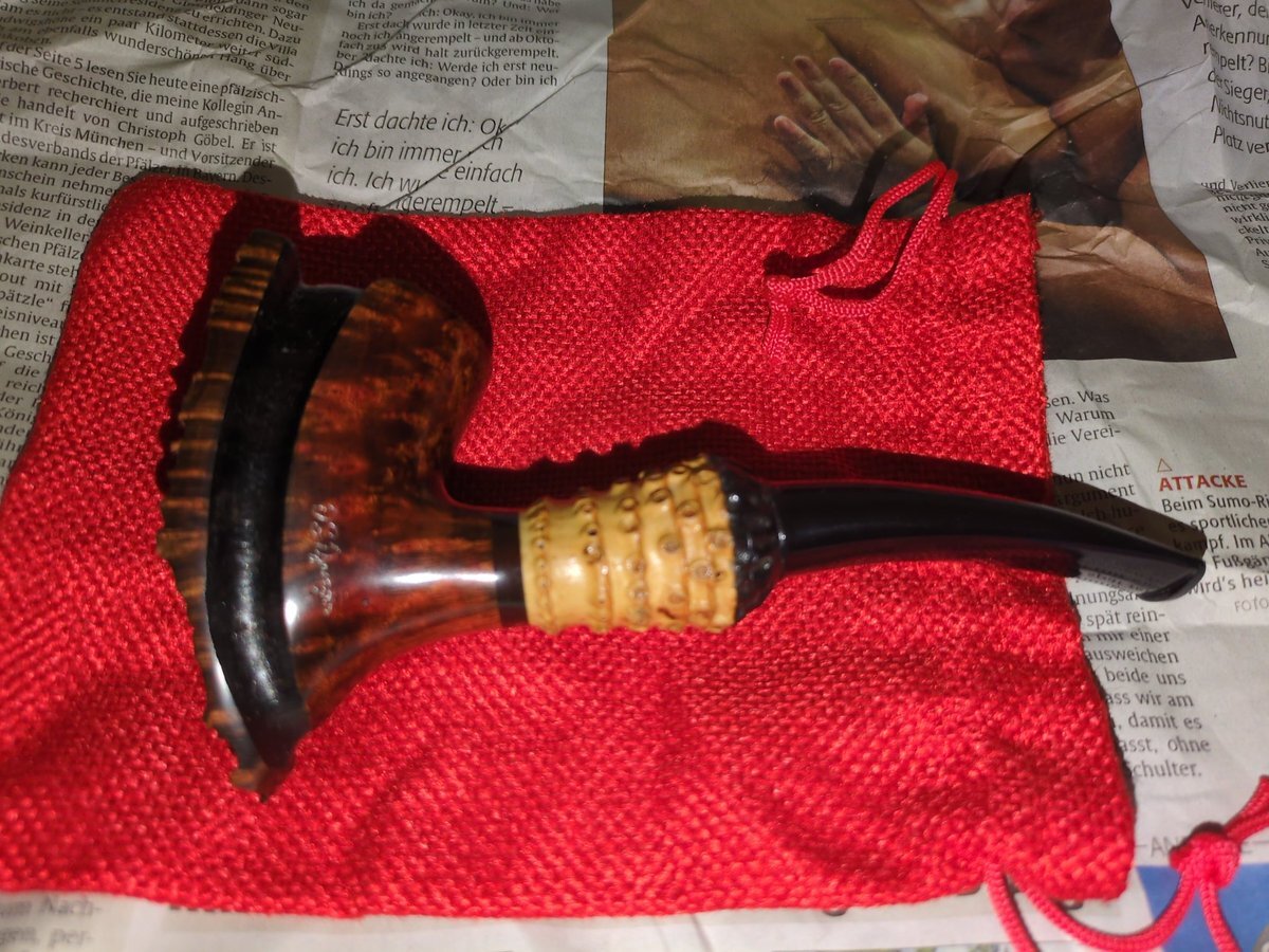 セルビアのパイプ作家DSdjuragin(DSジュラギン)のエレファントフット?だよね?が届いたー。eBayでドイツから少しお安く購入。新品。面白いパイプばかり作るからいつか一本欲しいと思ってたけどいいの見つけましたわ。さぁて勿体なくて使えねえぞ。 #パイプ pic.x.com/KQ6go05jh6