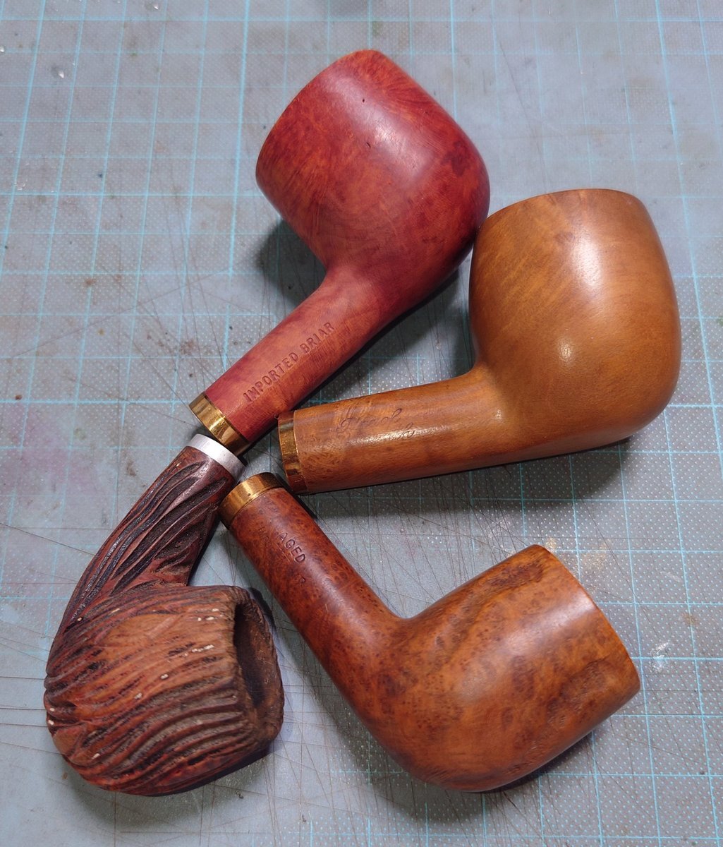 After「unknown (Ref.)」仮 特筆するような工程を施さなかったので、短時間でフィッニッシュ (チャンバー内、煙道は事前にクリーニング済み) シャンク径より細いステムでダボ面のメタルをチラ見せ 状態はそこそこ、見てくれは好み いずれステムは別モノに交換かな #パイプ #pipe #piperefurbishing pic.x.com/qeGzgkIOIt x.com/Fahrenheit916/…