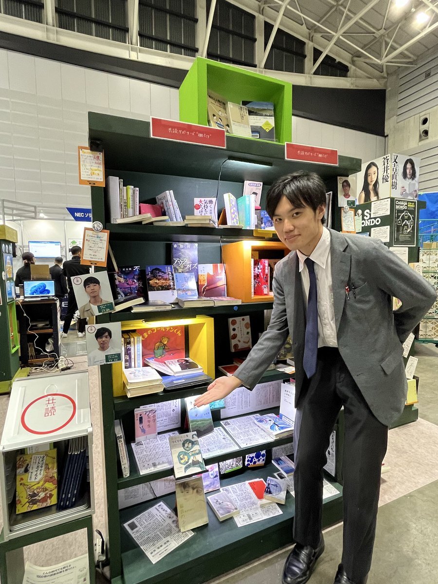 明日から、#図書館総合展 今日は共読サポーターズと職員で設営しました。たくさんのお客様との出会いがありますように。 #パシフィコ横浜 pic.x.com/JzYONE8UwR x.com/teikyo_melic/s…