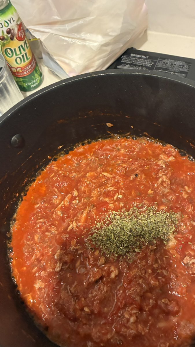 玉ねぎちゃんとニンニクをテキトーにいためる。 ↓ ホールトマトとサバ水煮を汁ごといてれ手で潰す。 ↓ 乾燥オレガノとかバジルとかあれば入れる ↓ ちょっと水分飛ばして出来上がり これに旬の野菜入れても良いカモね。 #fujiwara #パスタソース pic.x.com/y6HdqysOwj